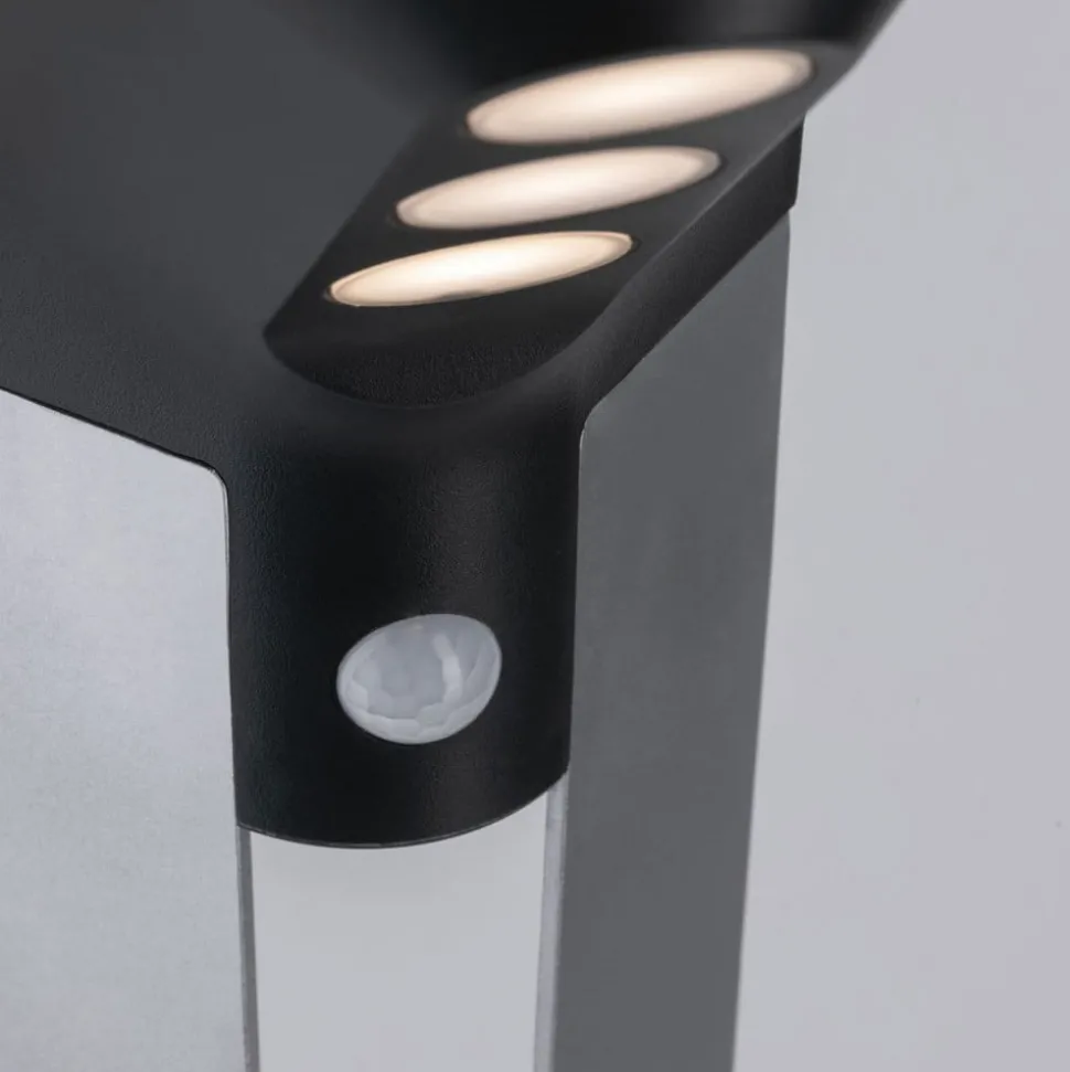 Als u op zoek bent naar een bollard lamp die functionaliteit en onafhankelijk design combineert, dan zou Soley by Paulmann op de lijst moeten staan. De schuine, trechtervormige kop op antracietkleurige kunststof wordt ondersteund door twee staande, schuin geplaatste stroken in aluminium afwerking. Voor de verankering wordt een aardingspiek meegeleverd die aan het armatuur kan worden geschroefd.