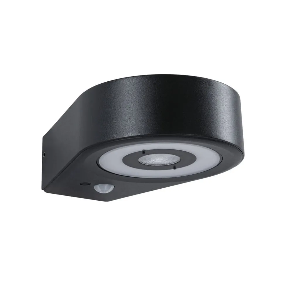 1-lamp LED buiten wandlamp Silma met sensorbediening De LED buiten wandlamp Silma is een handige, eigentijdse lichtbron, vooral voor entrees. De LED module geïntegreerd in de ronde kop straalt warmwit licht naar beneden. De roestvrije aluminium constructie garandeert duurzaamheid in uiteenlopende omgevingen. Dankzij de bewegingsmelder en daglichtsensor is een automatische, op de behoefte afgestemde regeling mogelijk – praktisch en energiebesparend – beschermingsgraad: IP44 – corrosiebestendig; geschikt voor gebruik in de buurt van de zee – sensor: infrarood, reikwijdte max. 3 m, detectiehoek max. 120° – sensorregeling configureerbaar (zie instructies) – QuickPlug: royale montageruimte en eenvoudig insteeksysteem vergemakkelijken de installatie