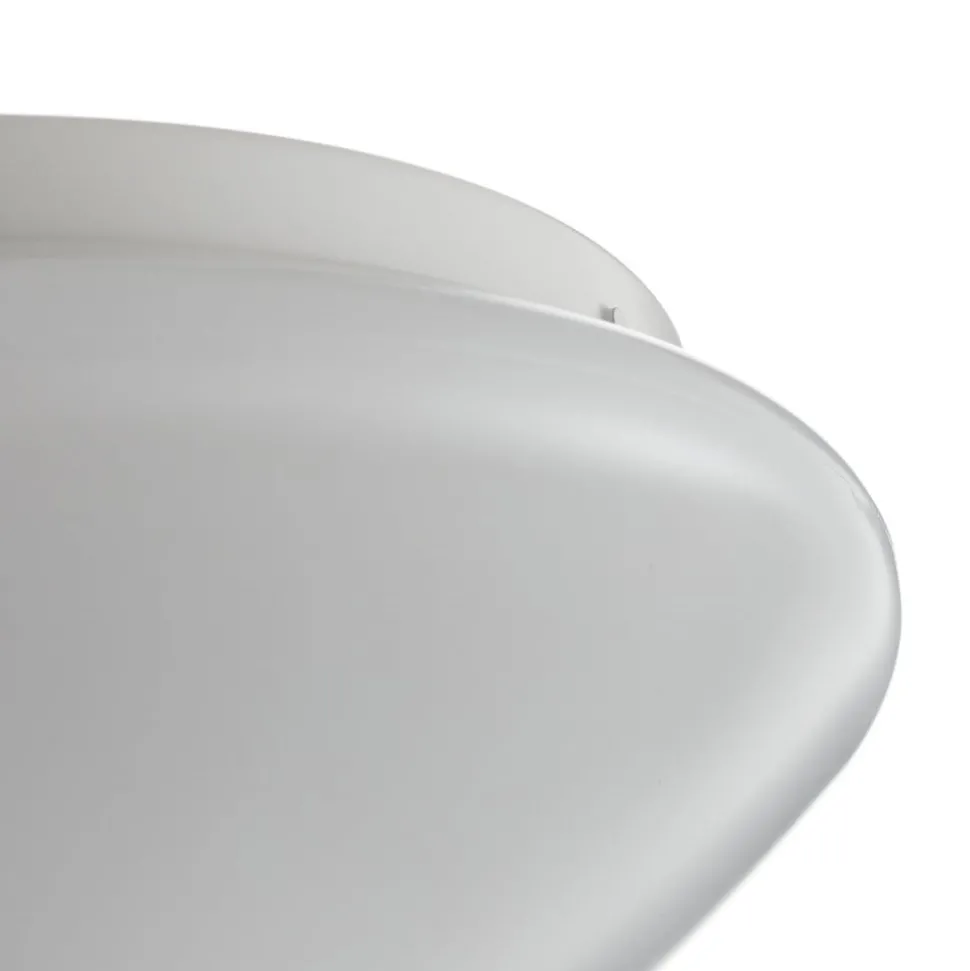 De LED plafondlamp Leonis heeft een onopvallend design en past daardoor probleemloos in de ruimte. Het gebogen ontwerp en de witte kleur zorgen ervoor dat de aandacht wordt gericht op het geproduceerde licht. Het licht wordt over een groot oppervlak en homogeen in de ruimte verspreid, omdat het zonder verblinding over het gehele oppervlak van de matte kap wordt uitgestraald. Het warme witte licht zorgt voor een gezellige sfeer, waardoor het zelfs in de vroege ochtend aangenaam wordt waargenomen. Dankzij beschermingsklasse IP44 is de plafondlamp spatwaterdicht, waardoor ze ook in de badkamer kan worden gebruikt.