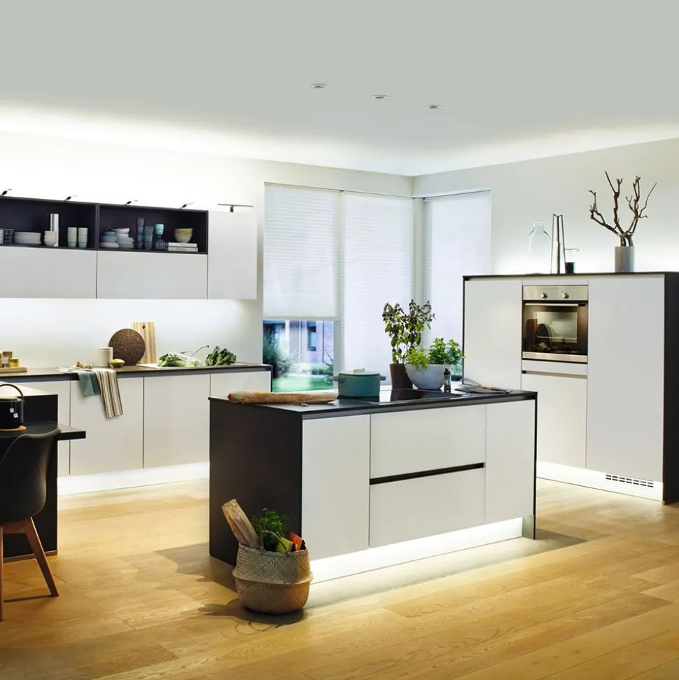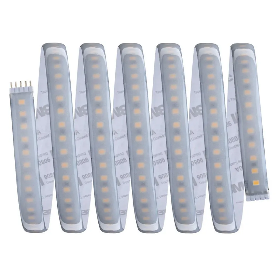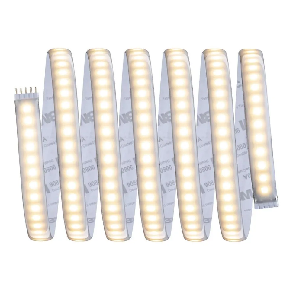 MaxLED 1000 LED strip: uitbreiding op de basisset – kan worden ingekort Deze verlengstrip uit de MaxLED-serie van Paulmann is 2,5 meter lang en voorzien van krachtige LED’s, waardoor hij geschikt is ALS belangrijkste lichtbron in een kamer. Eén meter MaxLED 1000 brandt even helder als een traditionele gloeilamp van 75 watt. Met een beschermingsgraad van IP44 is MaxLED zelfs ontworpen voor gebruik in vochtige ruimtes en buiten. Dit wordt gegarandeerd door een speciale coating die beschermt tegen stof en spatwater. De verlengstrip kan alleen worden gebruikt met de bijbehorende basisset inclusief transformator. Het gebruikte kunststof is flexibel, zodat het op vlakke en oneffen oppervlakken kan worden gemonteerd. De basisset is verkrijgbaar als accessoire – kan elke 41,5 cm worden ingekort – voorzien van zelfklevende achterkant voor eenvoudige installatie – eenvoudig insteeksysteem – een echte HighLight voor profielen