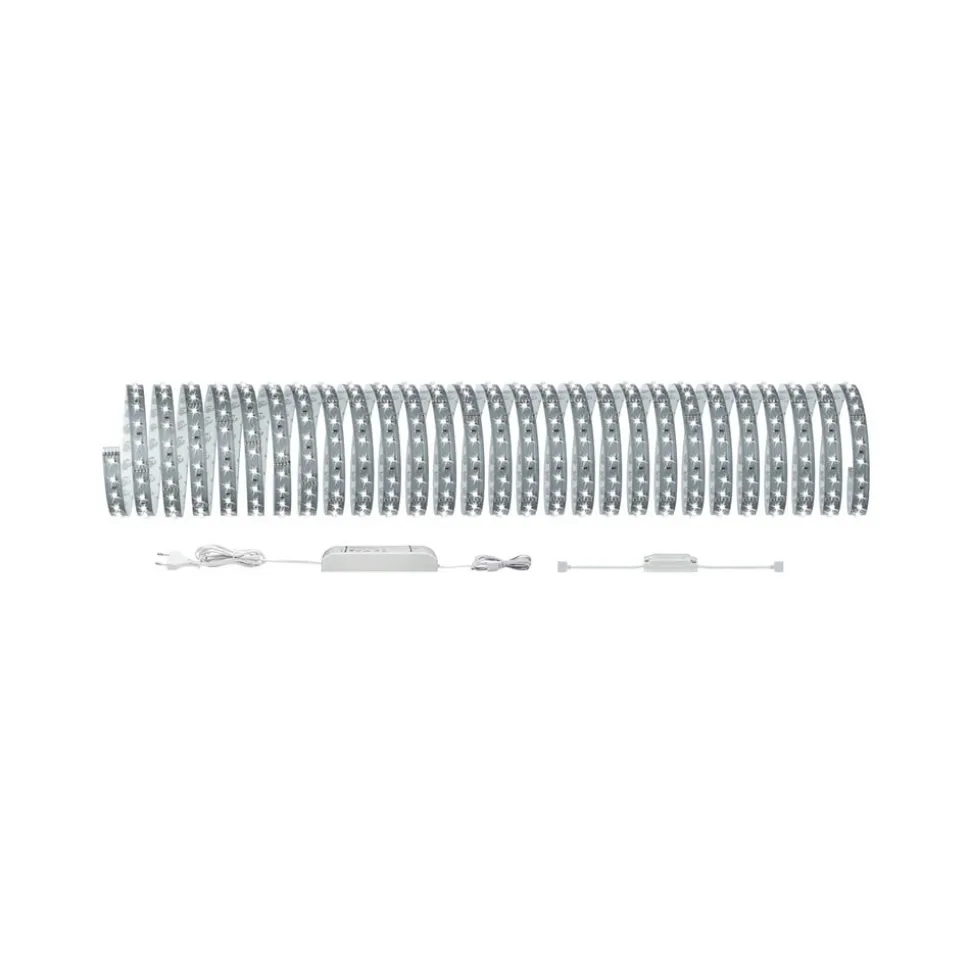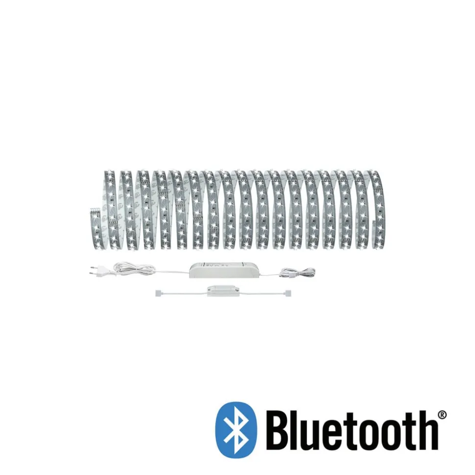 De basisset van het MaxLED 500 LED-stripsysteem is een uitgebreid alles-in-één pakket: uitgerust met een 10 m lange MaxLED 500 LED-strip, de bijbehorende connectoren en een ballast, evenals een dim-/schakelcontroller voor intelligente Bluetooth-bediening, staat niets een slimme verlichting nog in de weg. De LED-strip kan worden aangestuurd via de gratis Paulmann Home-app, waarmee eenvoudig geschakeld en gedimd kan worden met een smartphone of tablet.