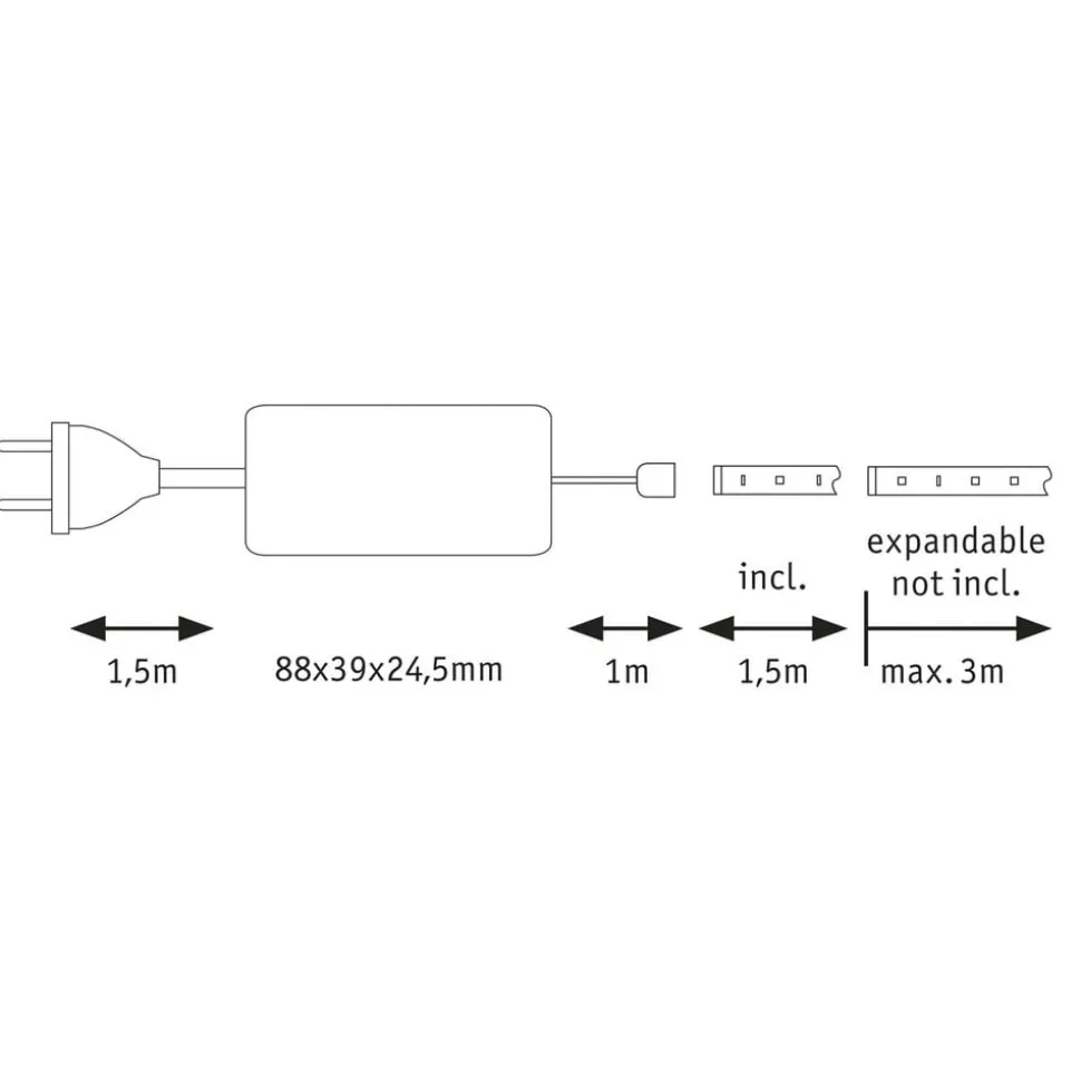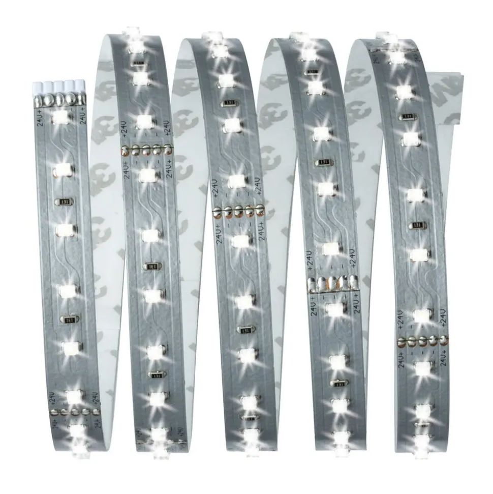 Met de MaxLED 500 LED strip basisset kunnen talrijke ruimteverlichtingen worden gerealiseerd, omdat de krachtige strip een verlichtingspatroon op verschillende oppervlakken mogelijk maakt, al naargelang de behoefte. Dit wordt enerzijds mogelijk gemaakt door de zelfklevende onderzijde en anderzijds door de flexibiliteit van de strook. De basisset bevat een passende ballast, en de set kan ook worden uitgebreid met uitbreidingsstrips (zie accessoires). Een geschikte afstandsbediening om de strip te schakelen of te dimmen is ook afzonderlijk verkrijgbaar.