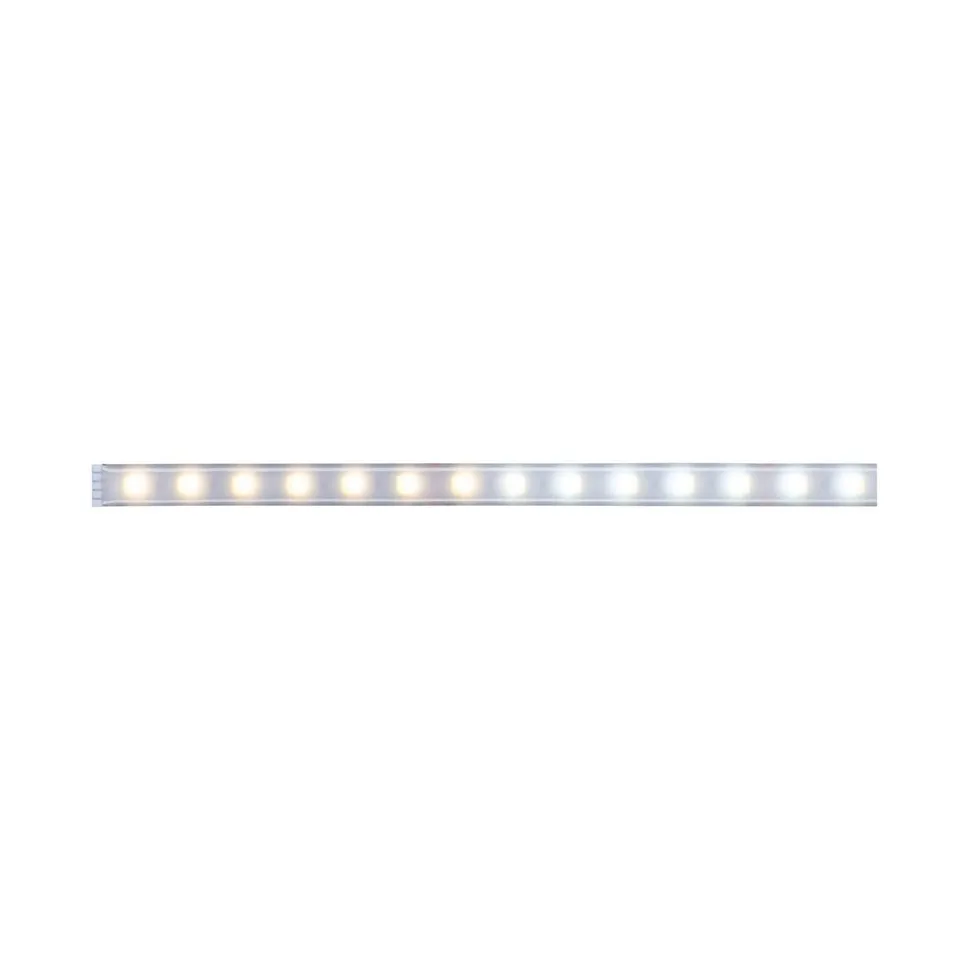 De MaxLED uitbreidingsstrip kan alleen worden gebruikt in combinatie met een basisset uit de gelijknamige serie. De lichtkleur kan worden ingesteld op elke kleurtemperatuur tussen 2.700 K (warm wit) en 6.000 K (daglicht). De achterzijde van de strip is zelfklevend en het eenvoudige insteeksysteem maakt de installatie eenvoudig.