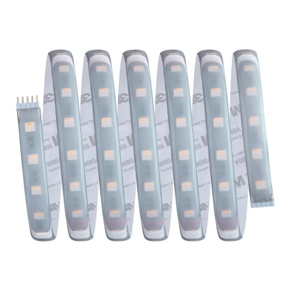 De speciale coating die de LED’s beschermt tegen stof en spatwater maakt de strip ook tot een lichtbron die kan worden gebruikt in vochtige ruimtes en buitenshuis. De benodigde transformator wordt niet meegeleverd (deze maakt wel deel uit van de basisset – zie accessoires). De installatie is zeer eenvoudig dankzij de zelfklevende achterkant. Voor de strip werd een flexibel materiaal gebruikt, zodat hij niet alleen op vlakke, maar ook op gebogen oppervlakken kan worden bevestigd. De componenten van de MaxLED-serie kunnen met elkaar worden verbonden via een eenvoudig insteeksysteem.