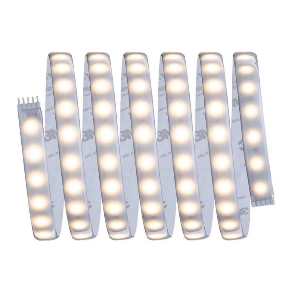 De speciale coating die de LED’s beschermt tegen stof en spatwater maakt de strip ook tot een lichtbron die kan worden gebruikt in vochtige ruimtes en buitenshuis. De benodigde transformator wordt niet meegeleverd (deze maakt wel deel uit van de basisset – zie accessoires). De installatie is zeer eenvoudig dankzij de zelfklevende achterkant. Voor de strip werd een flexibel materiaal gebruikt, zodat hij niet alleen op vlakke, maar ook op gebogen oppervlakken kan worden bevestigd. De componenten van de MaxLED-serie kunnen met elkaar worden verbonden via een eenvoudig insteeksysteem.
