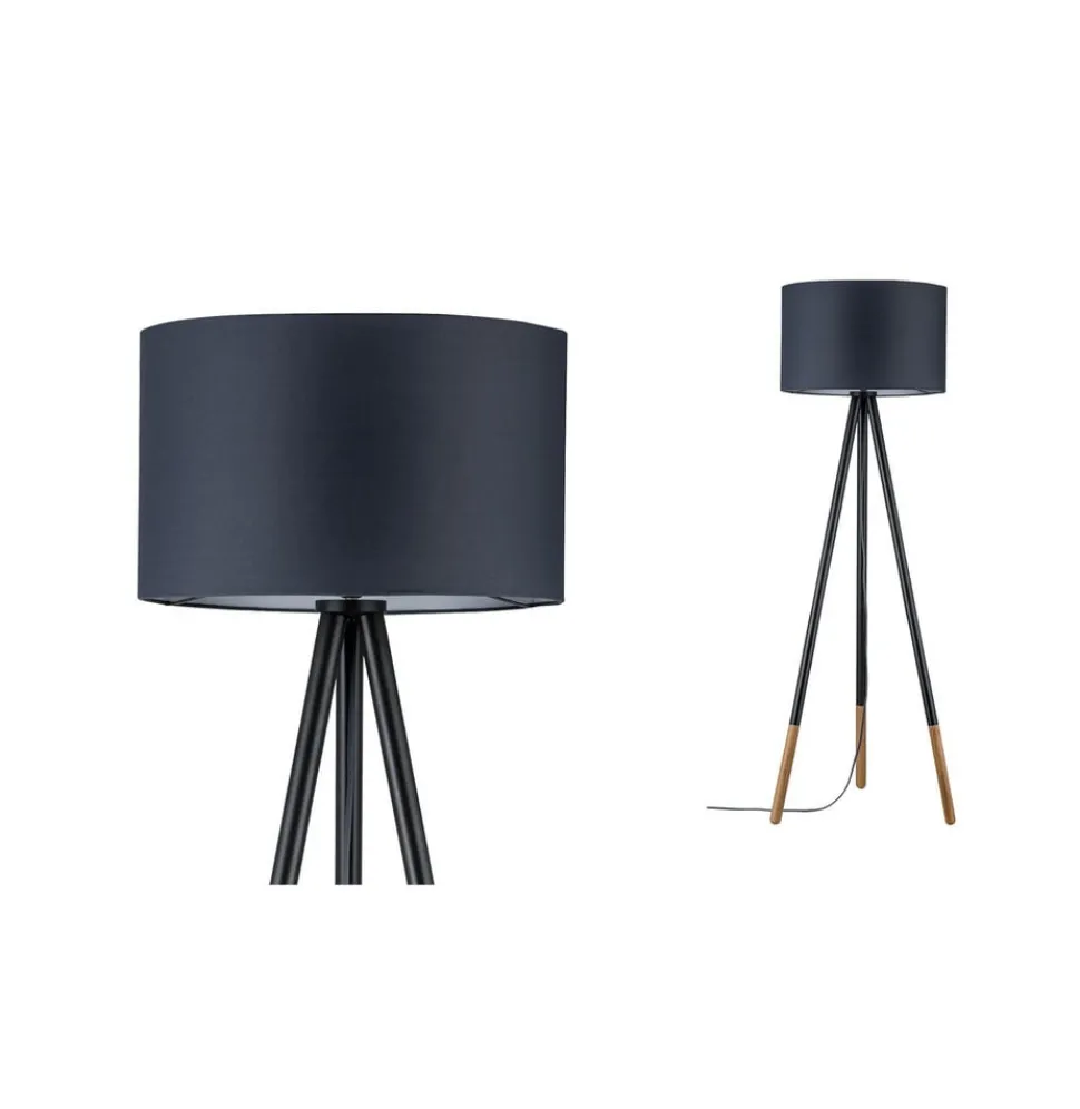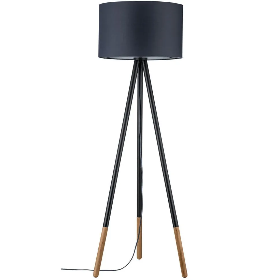 Driepoots vloerlamp Neordic Rurik met details in gecertificeerd hout