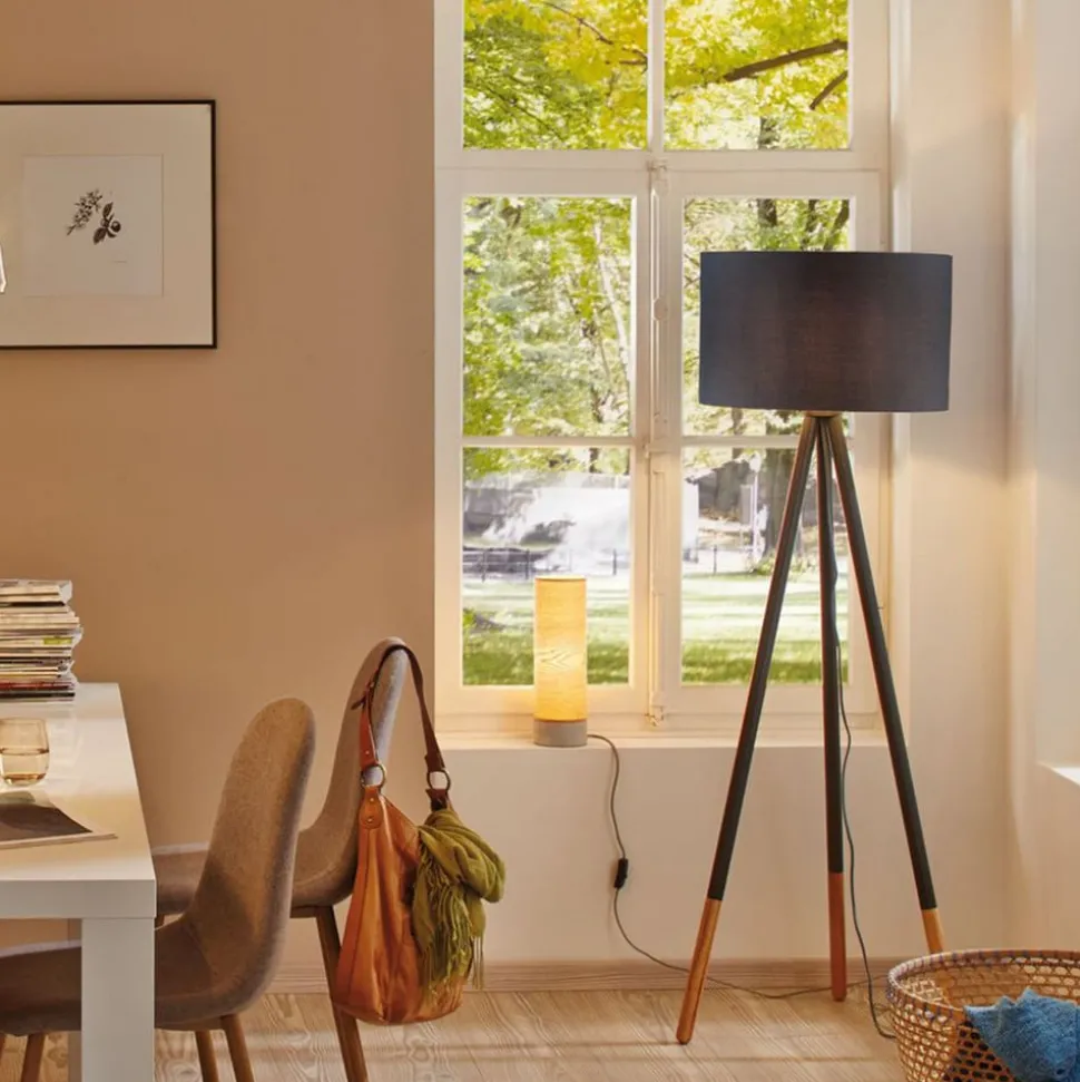 Eenvoudig design, duidelijke lijnen en vaak houten details – deze kenmerken kenmerken waarschijnlijk het best de Scandinavische stijl en zijn ook terug te vinden in de vloerlamp Neordic Rurik. Het armatuur heeft een brede kap in de vorm van een trommel van grijs textiel. Dit is gebaseerd op een driepuntsframe van metaal, dat zowel visueel aantrekkelijk is als de nodige stabiliteit biedt. De houten details aan de uiteinden van de drie poten vormen een warm contrast met het overwegend koele kleurenschema van de lamp. Het hout is FSC-gecertificeerd en komt uit duurzaam en verantwoord bosbeheer.