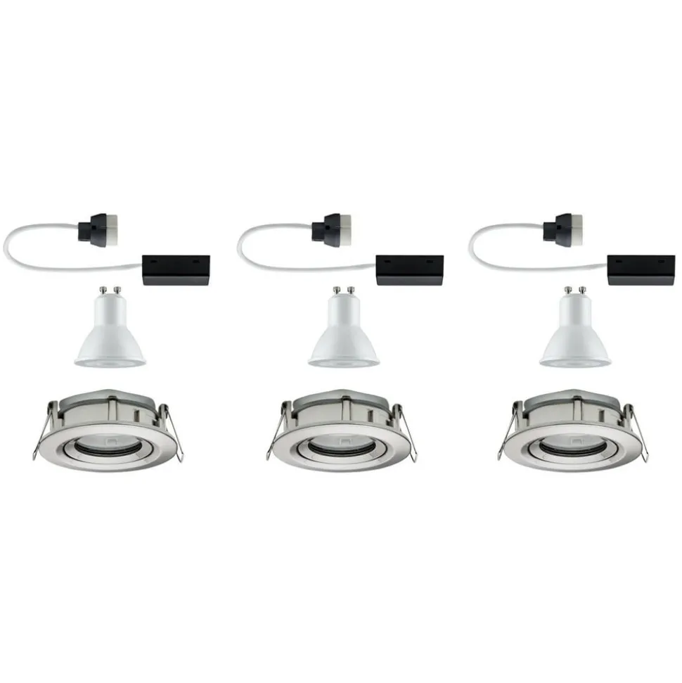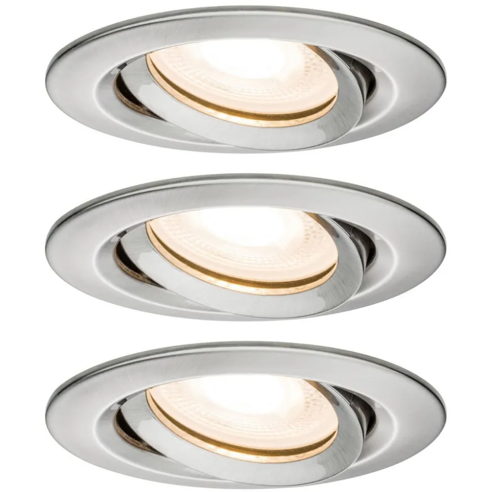 Veelzijdig en functioneel – Nova inbouwspot LED met IP65 Van de woonkamer tot de badkamer creëert de Nova inbouwspot een sfeervolle ambiance omdat hij dankzij IP65 in elke ruimte kan worden gebruikt. Die geïntegreerde draaimechanisme Mite de richting van de grote lichtkegel optimaal kan worden aangepast. Die inbouwlamp Nova kan ook gemakkelijk worden gemonteerd met behulp van borgveren, zonder dat er een vervelende klikring nodig is. Deze Set bevat drie versies van de armatuur, zodat grote oppervlakken kunnen worden verlicht. Er worden ook drie GU10 LED lampen meegeleverd, die met hun warmwit licht voor een gezellige sfeer zorgen en tegelijk energiebesparend zijn. Die zijn geschikt voor 230V directe aansluiting en kunnen gemakkelijk met elkaar worden verbonden – Dimbaar met dimmer R+C voor elektronische transformatoren