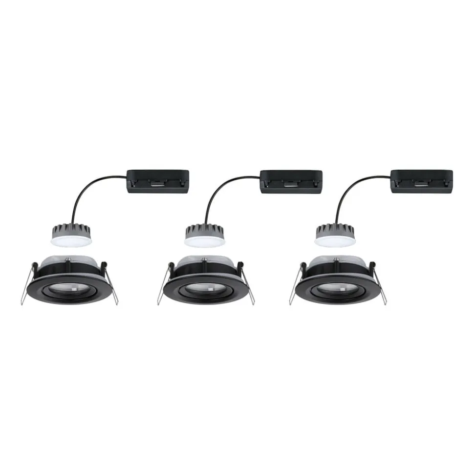 LED inbouwarmatuur Nova Plus Coin, zwart, set van 3, draaibaar, IP65