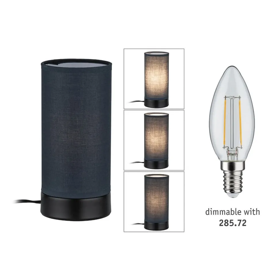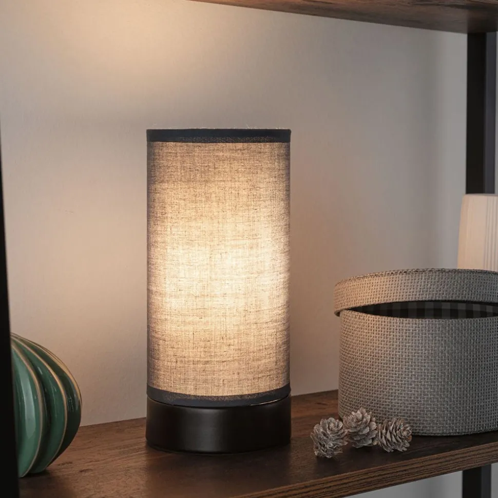 De eenvoudig vormgegeven tafellamp Pia kan door haar geringe afmetingen op bijna elke plaats worden gebruikt. Als gezellige accentverlichting op de vensterbank of als sfeerlicht op het nachtkastje, hij is individueel inzetbaar en harmonieert met talrijke inrichtingsstijlen. Rond en cilindervormig, valt hij onmiddellijk op door zijn stoffen kap. Als afsluiting dient een elegante, metalen voet, die de basis vormt en vloeiend in de stof overgaat. Dankzij het materiaal wordt een diffuus licht uitgestraald, dat moeiteloos kan worden bediend via de schakelaar op het snoer.