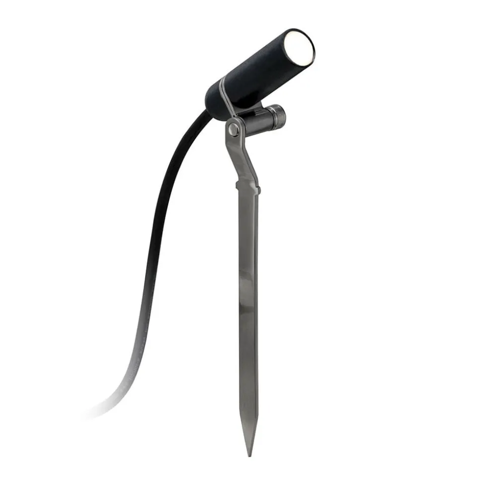 Cilindrische LED grondspies lamp Plug & Shine Plantini De Plantini grondspies lamp met zijn antraciet zwarte, cilindervormige kop heeft een eenvoudige en moderne uitstraling. De uitlijning kan worden aangepast met behulp van de schroefverbinding op de zilvergrijze grondspies. Met een bedrijfsspanning van 24 V en waterbestendige kabels, aansluitingen en armaturen is Plug & Shine van Paulmann een veelzijdige en veilige verlichtingsoplossing voor buiten.