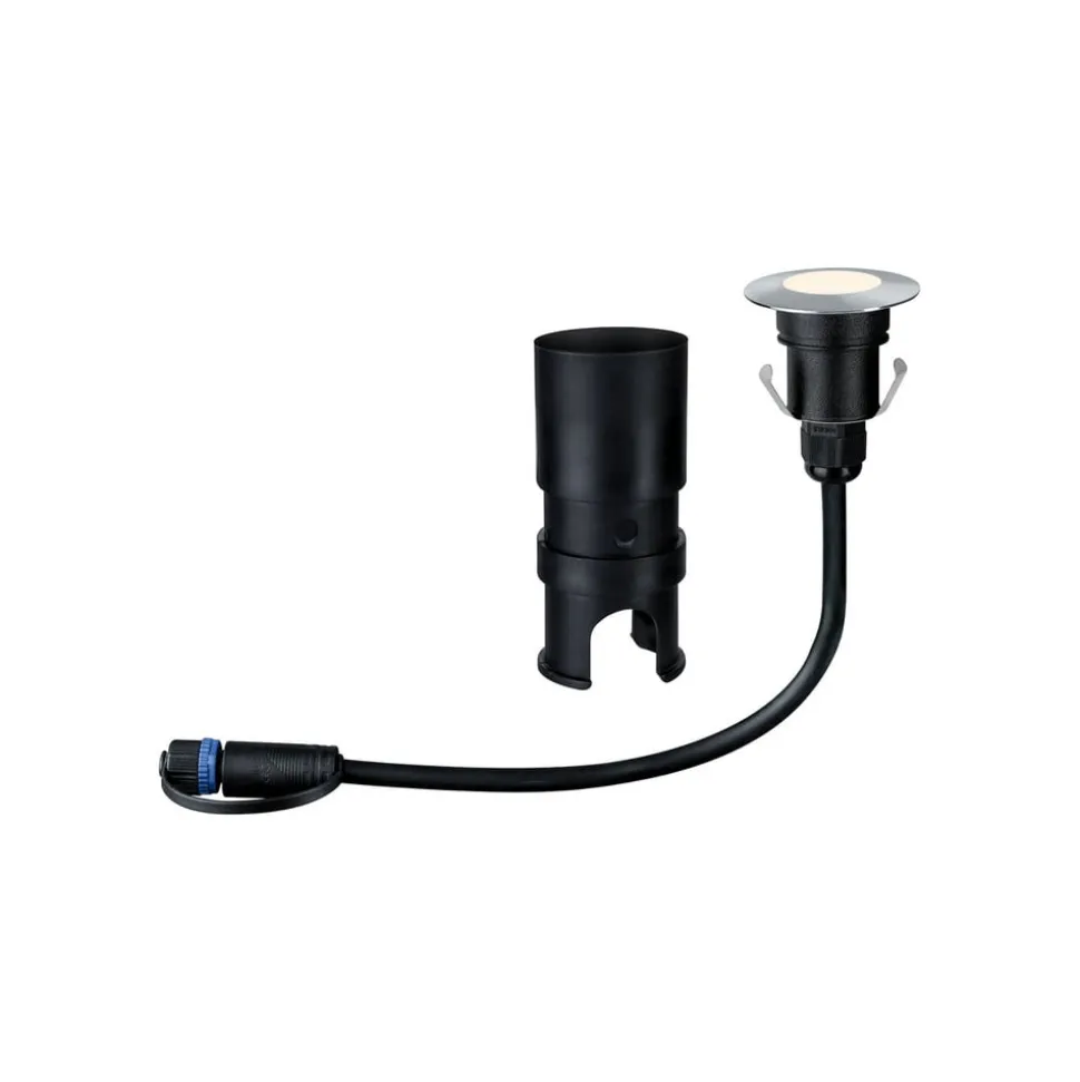 Kleine en ronde LED grondspot inbouwlamp Plug & Shine Floor Mini, enkele lamp Of ze nu afzonderlijk of in groepjes van meerdere wordt gebruikt – de ronde Floor Mini grondspot inbouwlamp met modern roestvrijstalen frame en matte kunststof afdekking zorgt voor aangenaam accent- en oriëntatielicht in de tuin, langs het pad of op het terras. Met een bedrijfsspanning van 24 V en waterbeschermde kabels, aansluitingen en lampen is Plug & Shine van Paulmann een veelzijdige en veilige verlichtingsoplossing voor buiten.