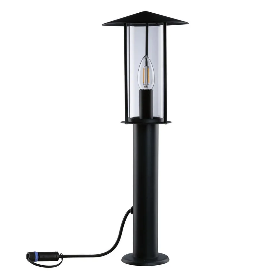 LED sokkellamp Plug & Shine Classic Lantaarn De Classic Lantaarn basislamp voor gebruik met het Plug & Shine buitenverlichtingssysteem combineert oriëntatielicht met een decoratieve uitstraling. Het cilindrische lamphuis en de steunen en kap van de kap zijn gemaakt van metaal met een antracietzwarte afwerking. De heldere zijkanten van de lantaarnkap bieden een duidelijk zicht op de LED sokkellamp met E14 voet, die het stijlvolle totaalbeeld van de sokkellamp compleet maakt – Met een bedrijfsspanning van 24 V en waterbeschermde kabels, aansluitingen en armaturen is Plug & Shine van Paulmann een veelzijdige en veilige verlichtingsoplossing voor buiten.