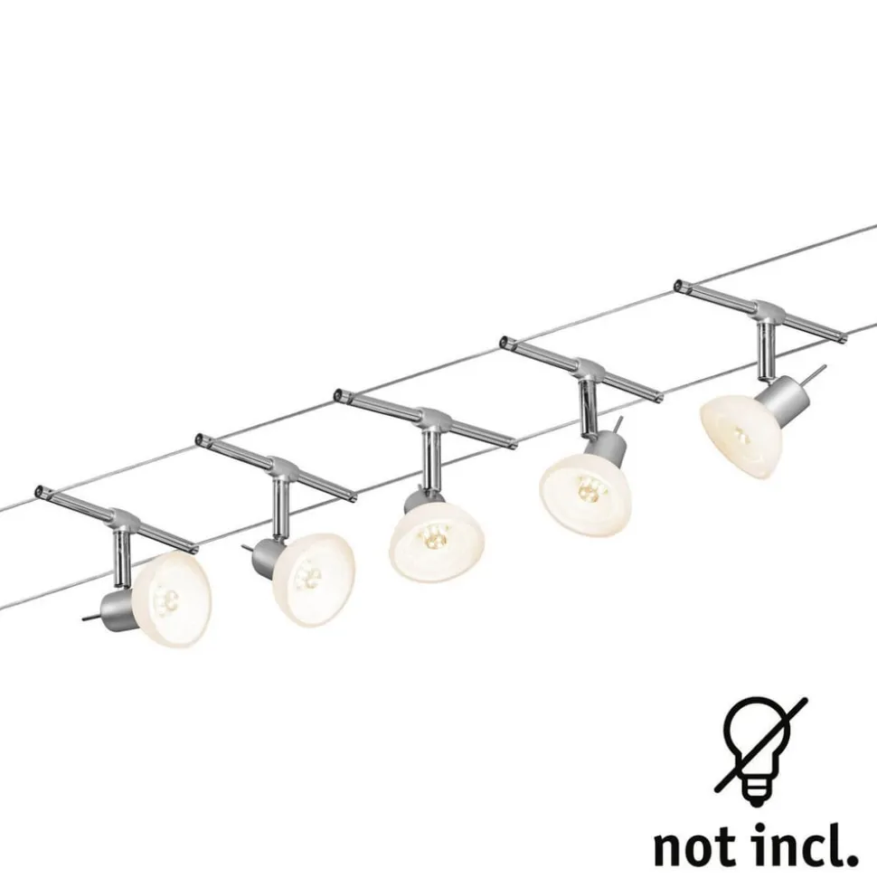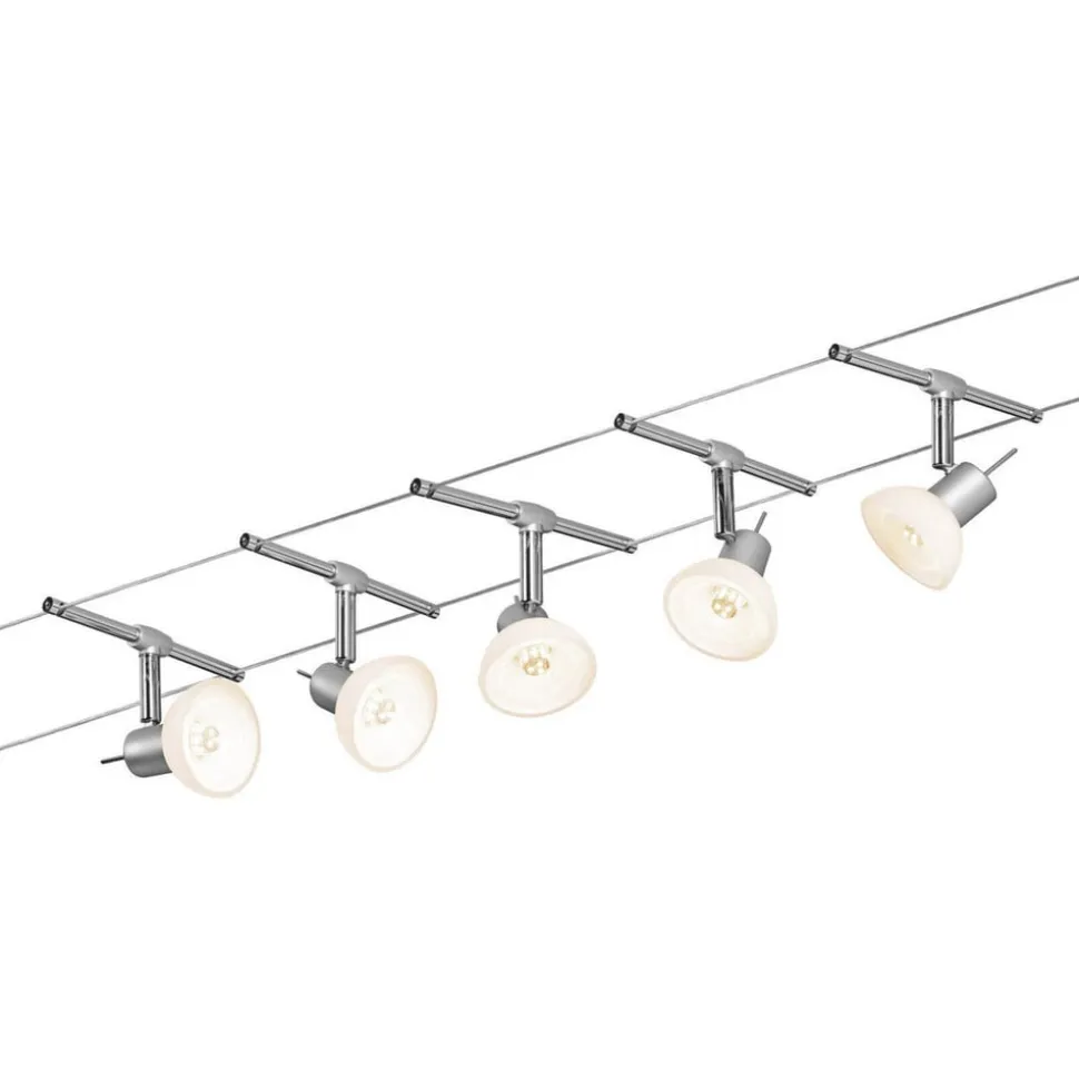 Snoerensysteem Sheela als basisgarnituur met vijf vlammen in mat chroom met opaalglas