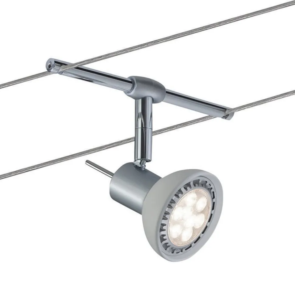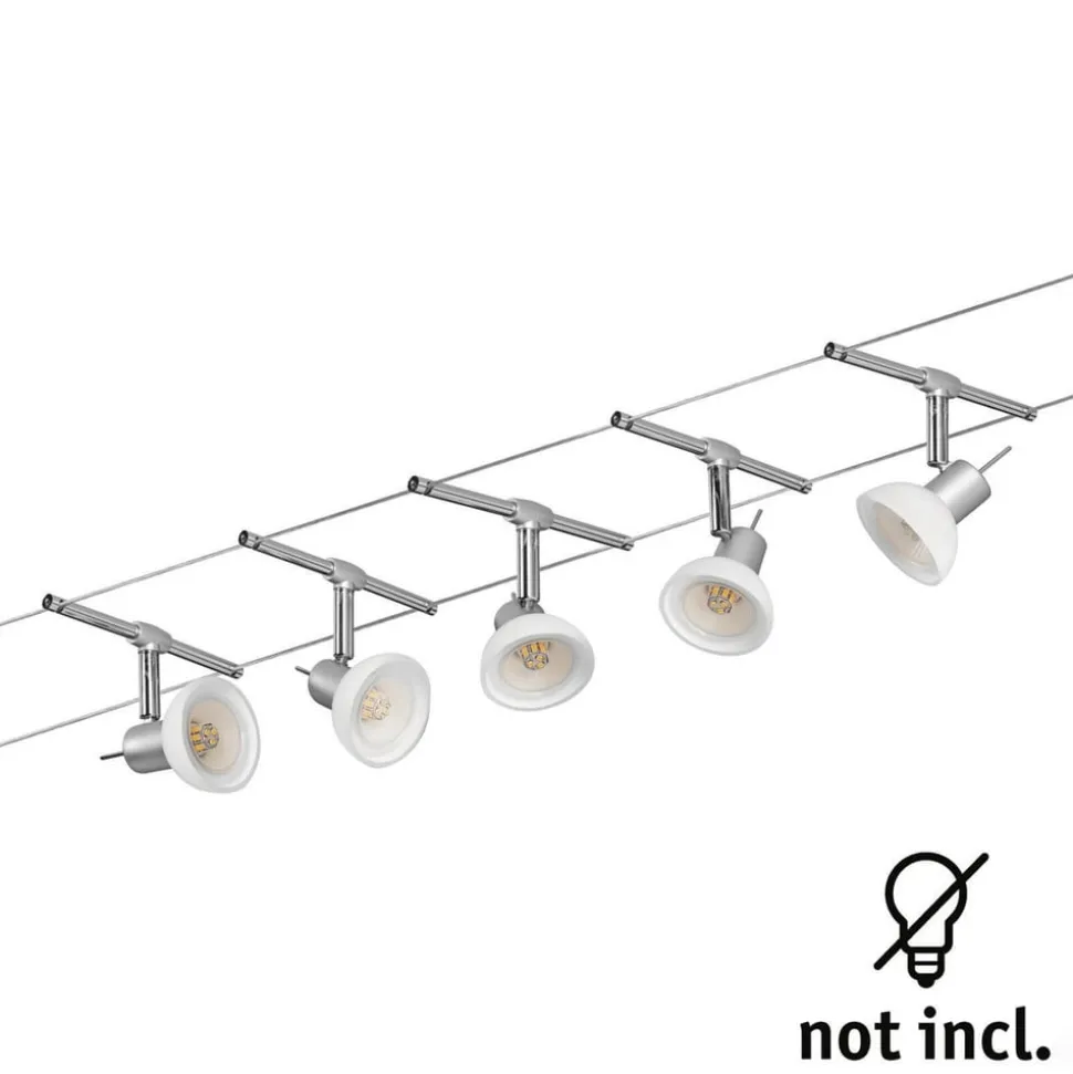 Sheela is een aansluitklaar kabelsysteem dat wordt geleverd als een complete set bestaande uit transformator, draad en vijf armaturen met halfronde glazen kappen. Het systeem biedt onbeperkte ontwerpmogelijkheden en kan zowel aan het plafond als aan een wand of op een schuin dak worden gemonteerd. De kappen van gesatineerd glas zijn voorzien van GU5.3 fittingen die kunnen worden uitgerust met een LED-lamp.