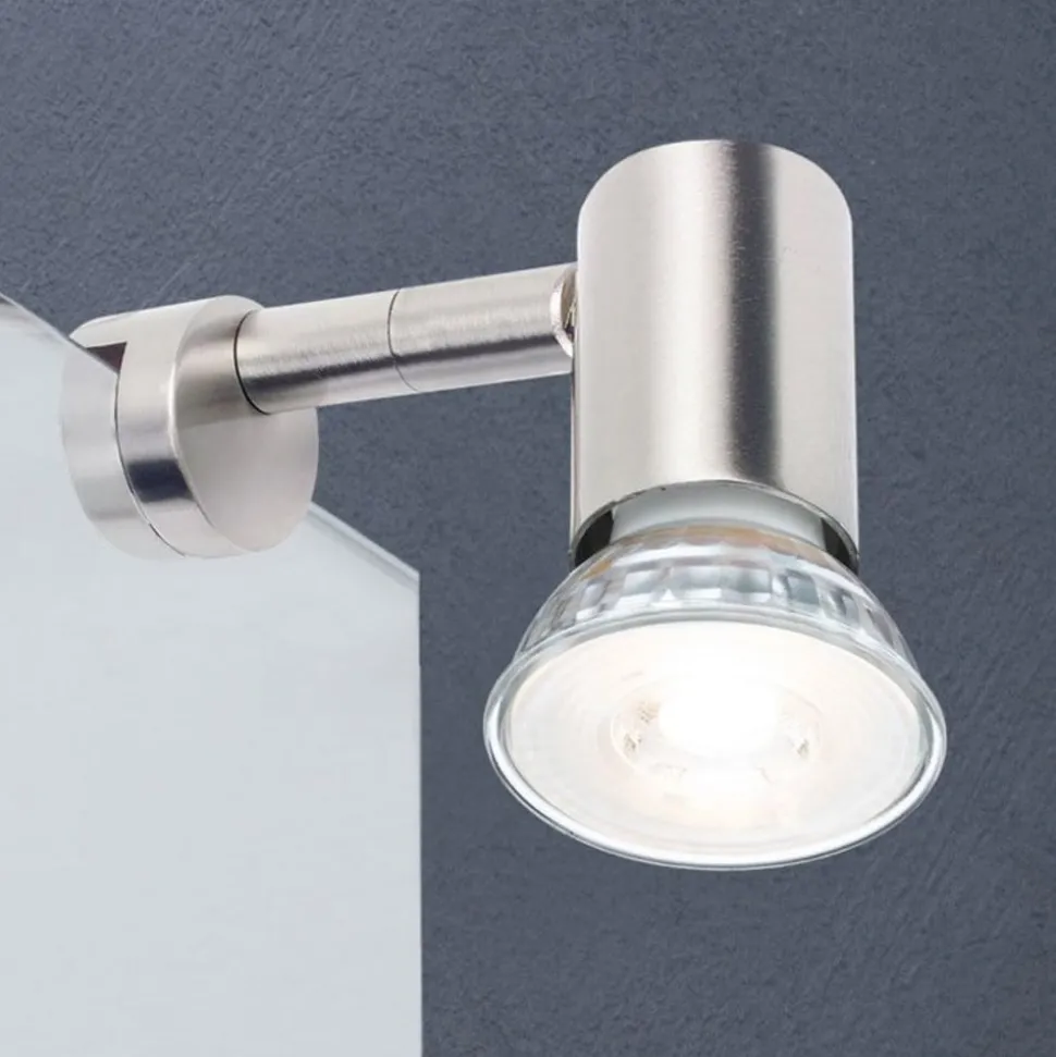 De LED-spiegellamp Simplo is een klassieke meubelopbouwlamp die direct op de bovenkant van de spiegel wordt gestoken en bevestigd. Op een kleine arm is een beweegbare ronde spotkop geïnstalleerd die de lichtbron bevat. Simplo garandeert een optimale verlichting door de variabele lichtverdeling. Deze lamp is gemaakt van metaal en maakt indruk met zijn geborsteld ijzeren oppervlak.