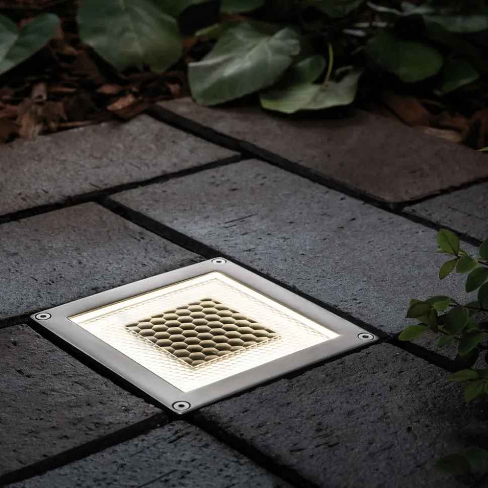 De Special Line Solar Cube vloerinbouwarmatuur van roestvrij staal en polycarbonaat heeft dankzij de zonnecellen geen stroomvoorziening nodig. Overdag laadt het zonlicht de vervangbare batterijen op, zodat de geïntegreerde LED’s in de schemering beginnen te gloeien. Special Line Solar Cube is voorzien van IP67 bescherming (waterdicht). Hij kan worden belast met een gewicht tot 500 kg en is daarom bij uitstek geschikt voor buitenterreinen die belopen kunnen worden. De oplaadtijd is 6-8 uur als je naar de zon kijkt, en de verlichtingstijd is 8-10 uur. Uitgerust met schemersensor. De oplaadbare batterij wordt meegeleverd.