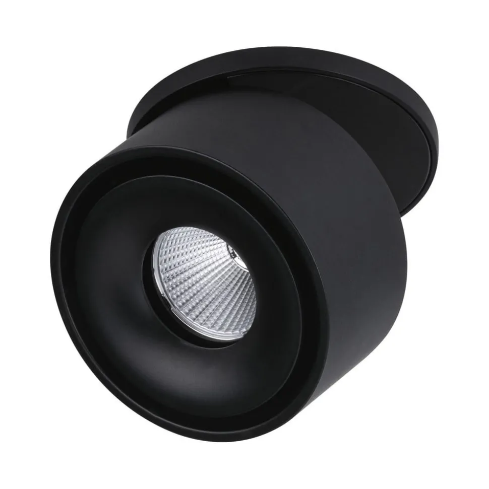 Spircle LED inbouwlamp met flexibel beweegbare lampenkop Spircle overtuigt niet alleen door het moderne, industriële design, maar ook door de zeer flexibele lichtrichting: de lampenkop kan 350° gedraaid of 90° gezwenkt worden. Hierdoor kan de lichtkegel precies daar worden gericht waar hij nodig is en kunnen speciale gebieden in de ruimte, zoals decoratieve meubelstukken of schilderijen, specifiek worden verlicht en perfect worden benadrukt. Kan worden gecombineerd met talloze interieurstijlen – Stralingshoek: 36°