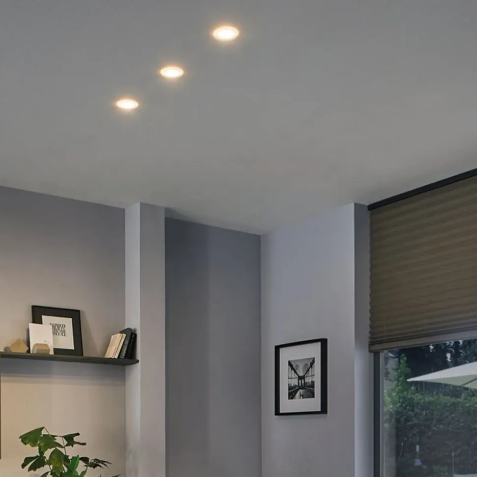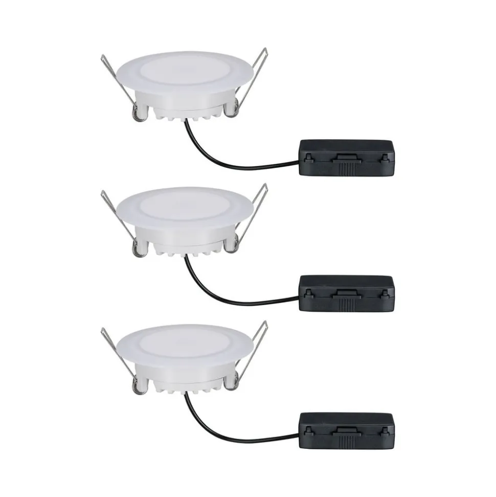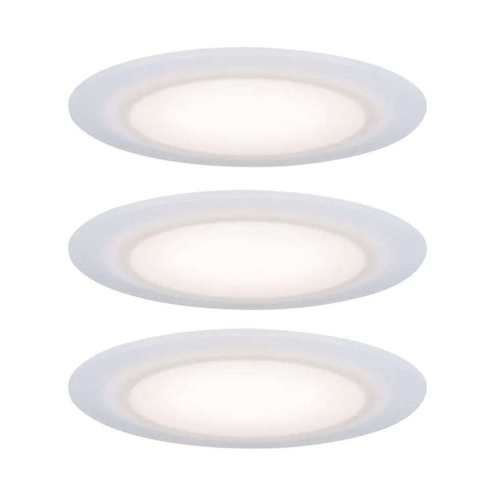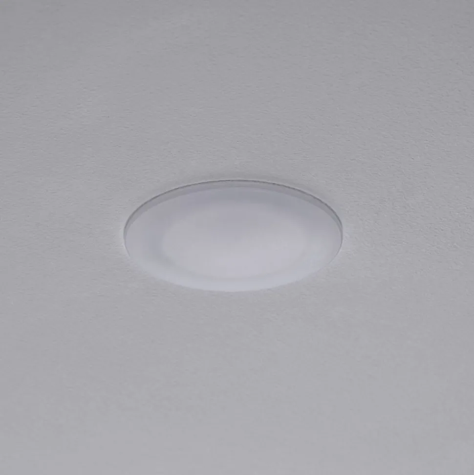 De frameloze Suon LED inbouwarmatuur van kunststof heeft een wit gesatineerd oppervlak dat verblindingsvrij, homogeen licht geeft en de ruimte royaal in warm wit licht baadt. In uitgeschakelde toestand lijkt hij vloeiend over te gaan in het plafond, waardoor hij zeer harmonieus opgaat. Dankzij IP44 is hij beschermd tegen spatwater. Suon wordt geleverd in een praktische set van 3 en de lichtsterkte kan ook worden geregeld met geselecteerde dimmers.