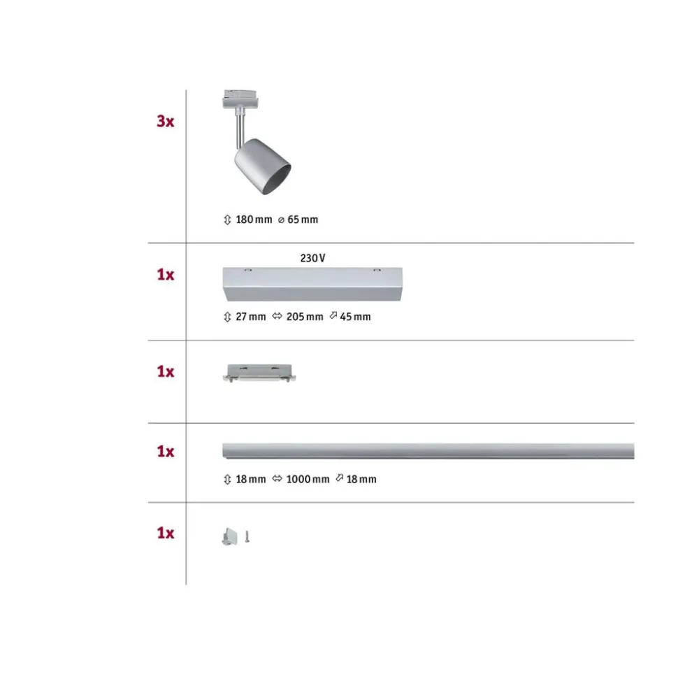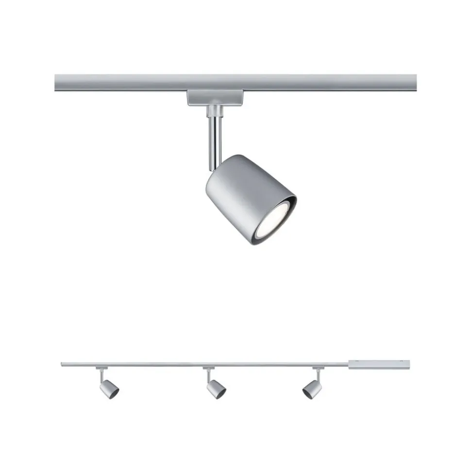 Praktische afdekset voor URail railsysteem met drie spots, mat chroom Deze set vormt een goede basis voor uitbreiding van het URail railsysteem. De levering omvat een 1 meter lange rail, drie spots die met elke GU10 lamp kunnen worden uitgerust en een voeding plus lijnconnector. Met de drie spots kan het licht individueel worden gericht en een groot gebied van voldoende licht voorzien. Het kan ook worden gebruikt om gewenste objecten vakkundig uit te lichten. De Cover set biedt een breed scala aan ontwerpmogelijkheden en kan worden gecombineerd met andere URail componenten – Complete set incl. voeding, lijnconnector, 1 m rails en 3 spots