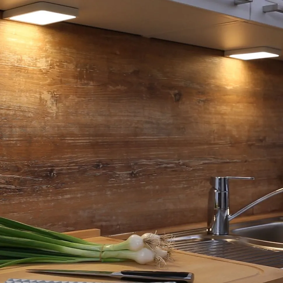 De spatwaterdichte Vane onderkastverlichting in een praktische set van 2 is de ideale lichtbron voor de directe verlichting van het werkblad in de kitchenette of het schap in de gang. Het uiterlijk van de rechthoekige lamp in het wit is eenvoudig en modern. Het benodigde aansluitmateriaal voor beide verlengingspanelen met twee eindkabels en connectoren en een gemeenschappelijke voedingsleiding met transformator en platte stekker voor de stroomvoorziening via het stopcontact is bijgevoegd. Er worden ook montageschroeven voor de bevestiging van de connectoren meegeleverd, die tegelijkertijd de verlichting vasthouden en voeden.