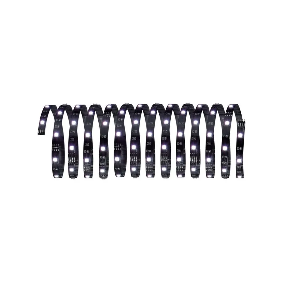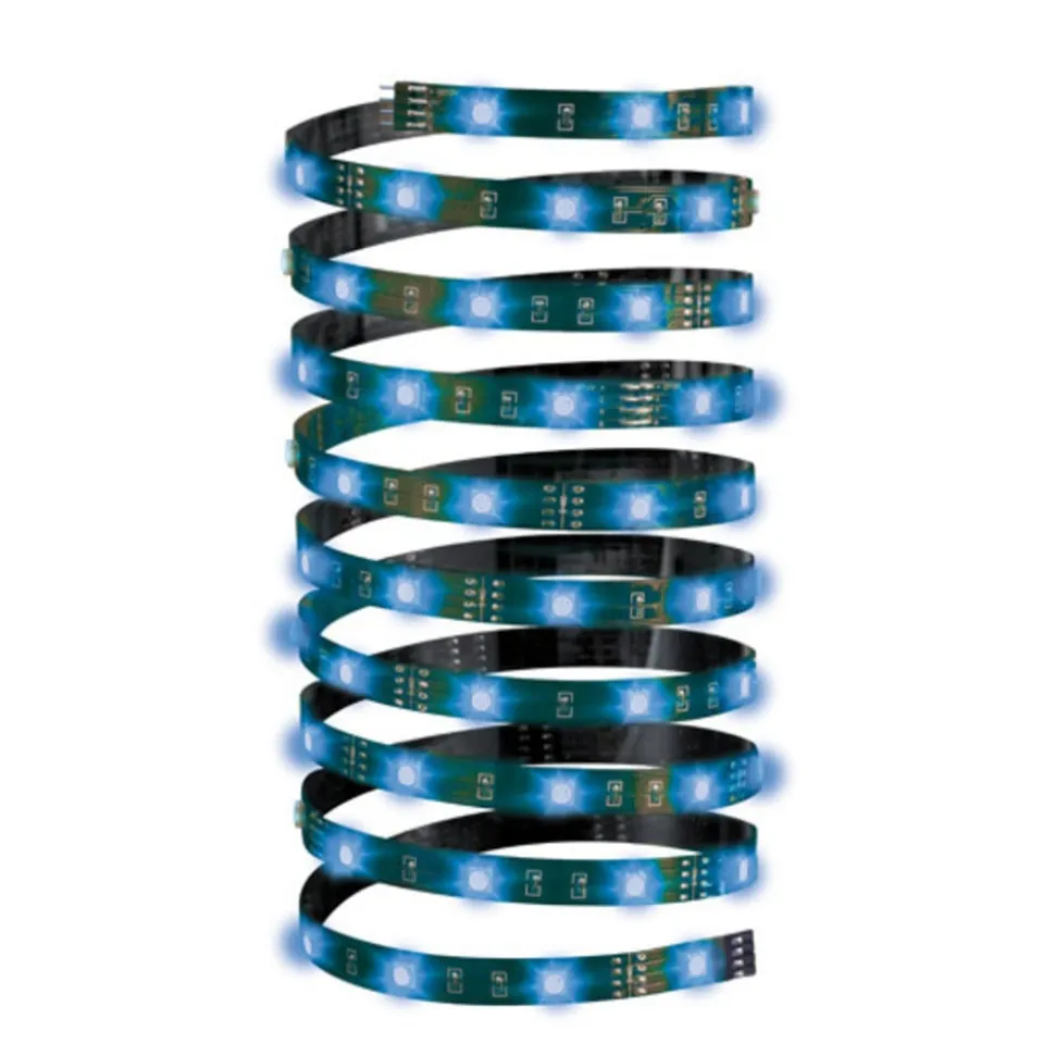 Decoratieve verlichting op trappen, meubels, televisies, enz. kan worden gerealiseerd met dit LED stripsysteem Function YourLED Eco. Een brede waaier van toebehoren, zoals verbindingsstukken, hoekverbinders, X-verbinders, hoekprofielen, enz. kan worden gebruikt om een grote verscheidenheid van vormen te creëren. De strip kan om de 10 cm worden ingekort (aangegeven op de strips) en afgeknipte delen kunnen weer aan elkaar worden gekoppeld met de clip-to-clip connector. Voor aansluiting is een transformator (voeding) nodig. De bediening is gemakkelijk via een afstandsbediening. Beide zijn niet inbegrepen in de leveringsomvang en kunnen als toebehoren worden besteld. Met de afstandsbediening kan een breed scala aan bedieningsopties worden gerealiseerd, kunnen kleurveranderingen en lichteffecten worden geprogrammeerd en kunnen de LED’s worden gedimd. De stralingshoek van de LED’s is 120°. Het systeem kan worden verlengd tot maximaal 6 meter.