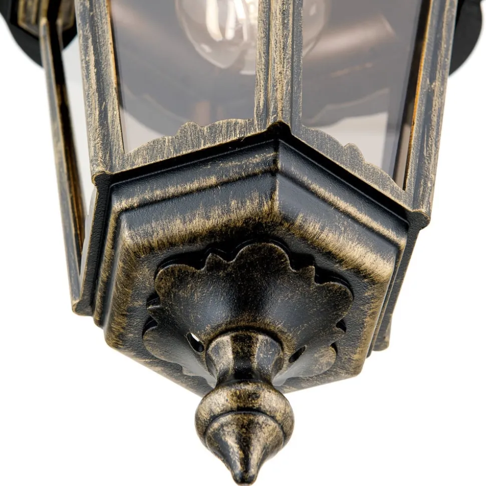 De verlichting uit de Puchberg-serie zorgt voor een veilige nachtverlichting en biedt overdag een aantrekkelijk uiterlijk: de armatuur glanst in zwart-goud terwijl de vensterglazen in de lampkop in zacht rookgrijs zijn uitgevoerd.