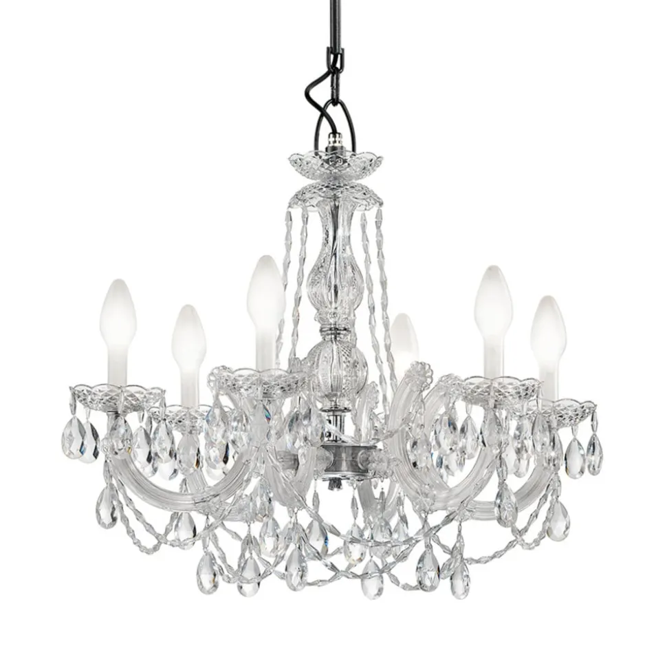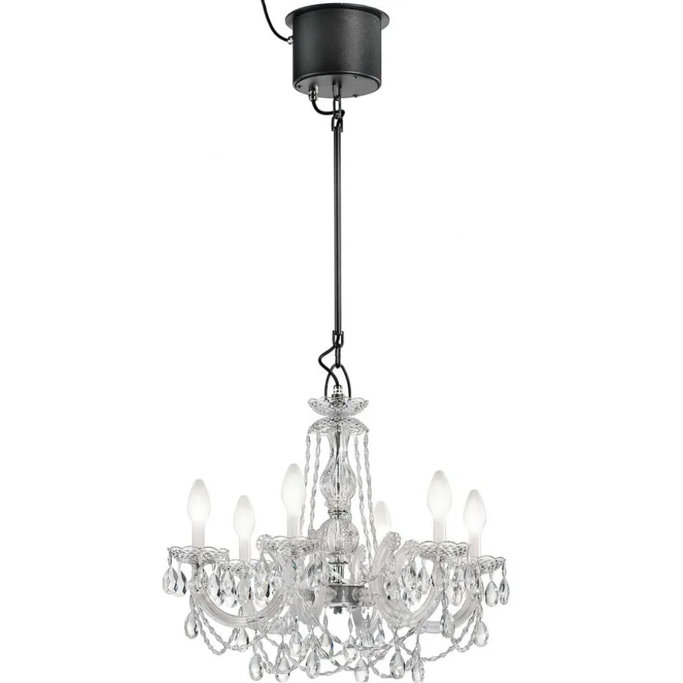 Deze LED kroonluchter Drylight S6 is een echt meesterwerk, zowel in optisch alsook in technisch opzicht. Volledig uit helder methacrylaat vervaardigd, openbaart ze haar volledige schoonheid pas bij het aangeschakelde licht. Aldaar, waar bij klassieke kroonluchters eertijds echte kaarsen zaten, is Drylight met zes LED’s uitgerust, die zich achter kaarsvormige, gesatineerde kappen verbergen. Maar in tegenstelling tot een conventionele kroonluchter kan drylight in alle denkbare lichtkleuren stralen. Nadat de voor iOS en Android beschikbare Masiero Smart Light App op de smartphone geïnstalleerd is, kan het licht van de kroonluchters via de app bestuurd worden. Als derde mogelijkheid kan Drylight ook in elk met DMX aangedreven domoticasysteem thuis geïntegreerd en daarover bestuurd worden.