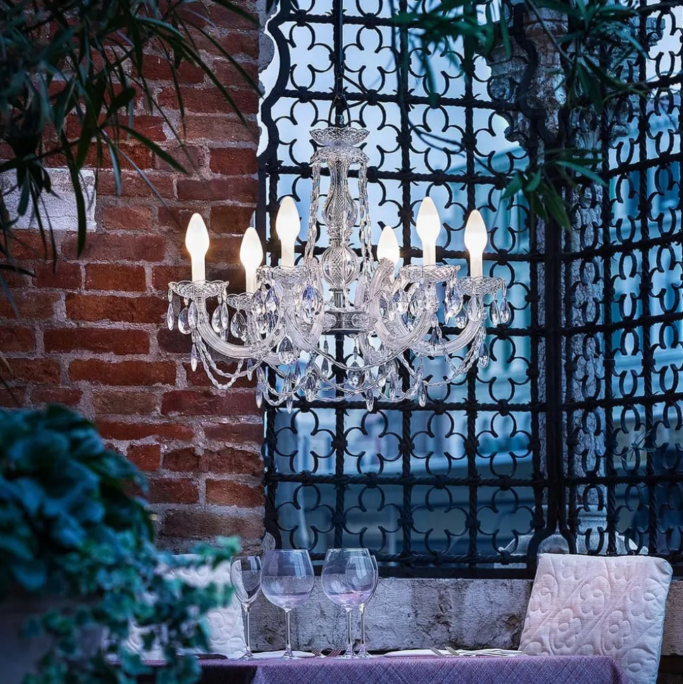 Drylight wordt het buitengebied van elk huis – zij het in private gebieden of in tuinen van hotels of andere openbare gebouwen – met een uniek lichtschouwspel betoveren, dat op elk moment naar believen veranderd kan worden. De kroonluchter is met IP65 bescherming uitgerust, zodat ze hem in elke weersomstandigheden nauwelijks kunnen beïnvloeden.