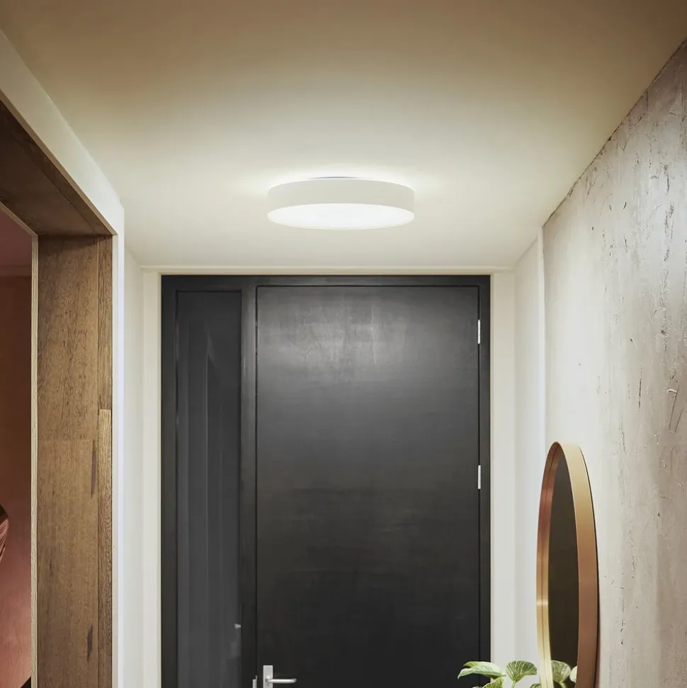 De ronde LED-plafondlamp Hue Enrave biedt helder licht voor een groot gebied. Of het nu in de woonkamer, hal of slaapruimte is, Enrave biedt instelbare helderheid en witte tinten in het spectrum van warm wit tot daglicht, het juiste licht op elk moment van de dag. Dankzij de meegeleverde dimschakelaar kan de plafondlamp direct worden in- en uitgeschakeld en gedimd. Als alternatief kan de armatuur ook via Bluetooth met uw eigen smartphone worden bediend, zonder dat er extra apparaten nodig zijn. Slimme integratie in een bestaand Philips Hue smart home-systeem via de Hue Bridge (zie accessoires) is ook mogelijk.