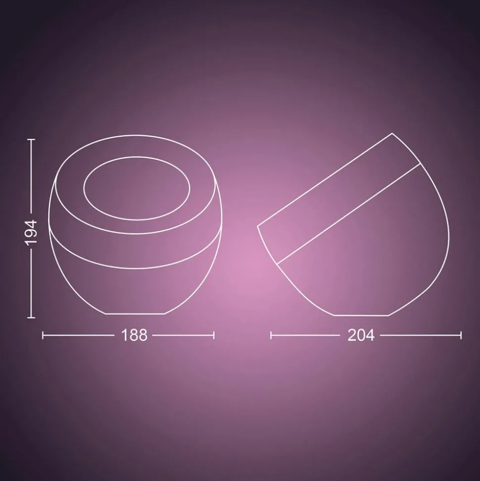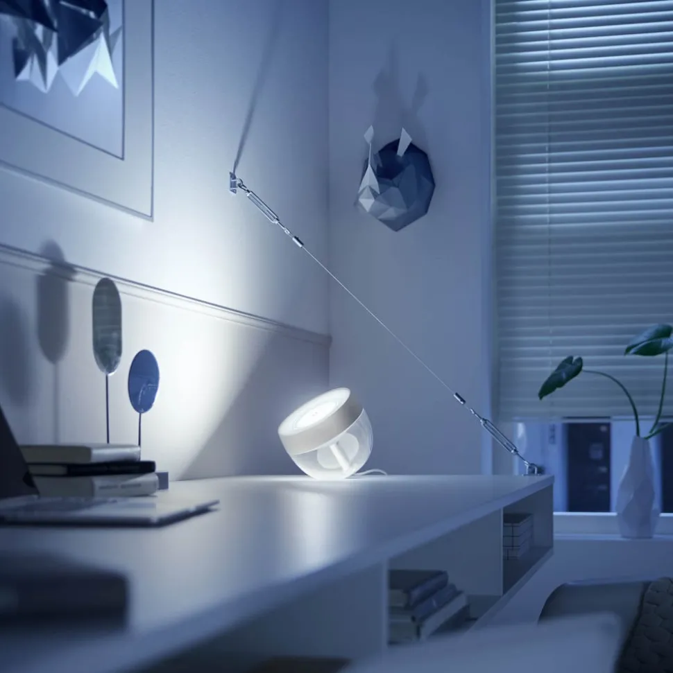 Via de bijpassende bridge kan de tafellamp ook in een bestaand smart home-systeem worden geïntegreerd. Hiervoor is de gratis Hue-app beschikbaar. Naast het maken van groepen, scènes of schema’s, is toegang tot 16 miljoen kleuren en alle wittinten mogelijk. Dit wordt mogelijk gemaakt door de White en Color Ambiance technologie. Zo kan de lichtkleur op elk moment perfect worden aangepast aan de situatie en de behoeften en kan de juiste sfeer worden gecreëerd. Ook het dimmen van het licht is kinderspel met de app; dankzij de nieuwe Deep Dimming functie (< 1% helderheid) is de tafellamp ook geschikt als nachtlampje of zachte verlichting bij het wakker worden.