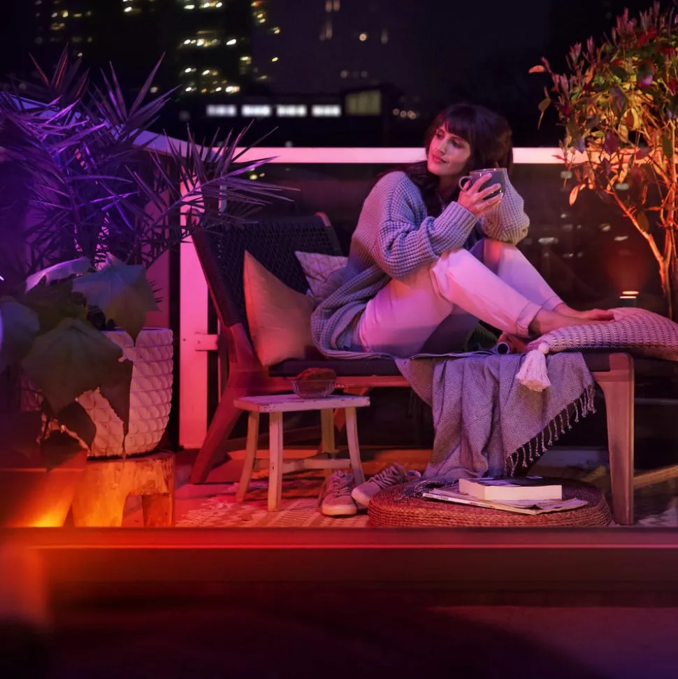 De Philips Hue Lightstrip Outdoor met heldere LED’s zorgt voor spannende buitenverlichtingsmomenten. Dankzij de IP67-classificatie is hij hier perfect voor uitgerust en is hij waterdicht tot 1 m. De flexibiliteit wat betreft de montagemogelijkheden is te danken aan de hoge flexibiliteit, waardoor de Lightstrip bijna overal gemonteerd kan worden. Uitgerust met een transparant, robuust kunststof oppervlak genereert de Lightstrip een diffuus licht dat individueel kan worden ingesteld. Tot 16 miljoen kleuren en alle tinten wit zijn gemakkelijk toegankelijk via de smartphone met behulp van de app. Deze White & Color Ambiance functie geeft de Lightstrip een grote verscheidenheid aan verlichtingsopties, zodat niets de gewenste instelling en aanpassing aan elke situatie en sfeer in de weg staat. De Lightstrip kan net zo gemakkelijk op het balkon als op het terras of zelfs binnenshuis worden gebruikt. Het kan worden bestuurd via de Hue Bridge of gemakkelijk via Bluetooth met behulp van de Hue Bluetooth-app.