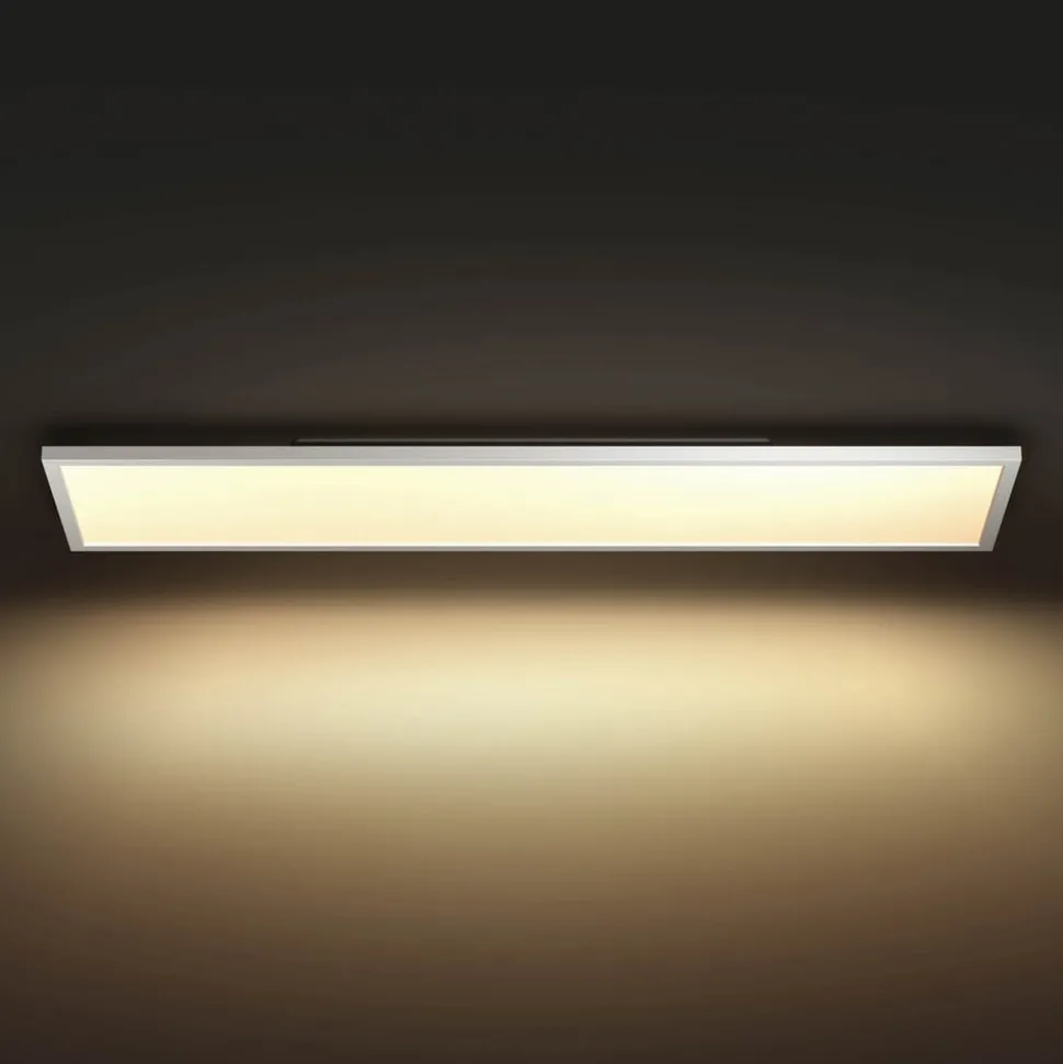 Het moderne Surimu LED-paneel biedt wit en gekleurd licht dat handig kan worden bediend via een app, via spraakassistent of de Hue-dimschakelaar (niet inbegrepen). Als de plafondlamp via Bluetooth is gekoppeld met de smartphone/tablet, kan deze worden bediend met de Hue Bluetooth-app.