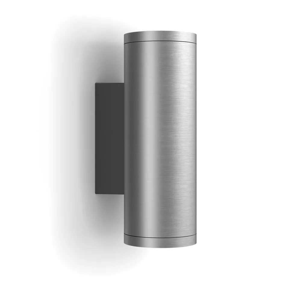 Slimme op-en-neer Outdoor Wall Light Philips Hue wit en kleur Ambiance verschijnen als een roestvrijstalen cilinder