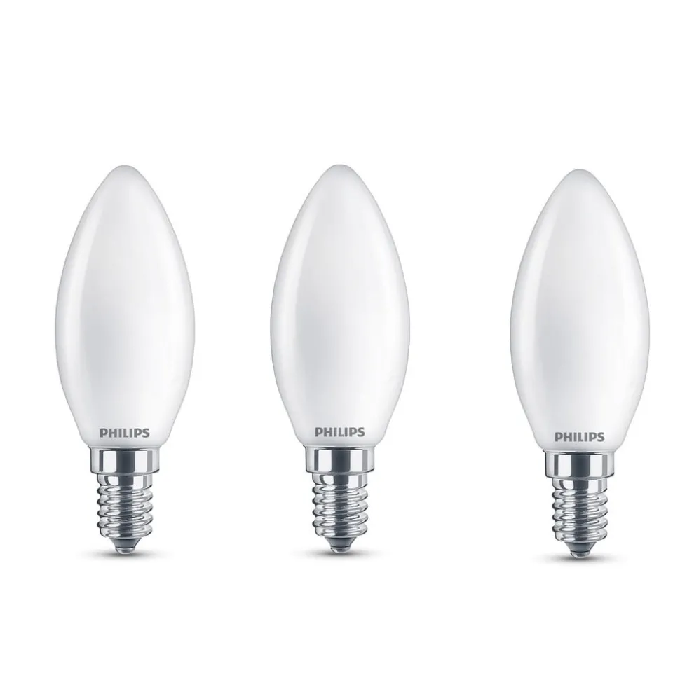 Matte E14 LED kaarslamp met warm witte lichtkleur, 4,3W in een verpakking van 3
