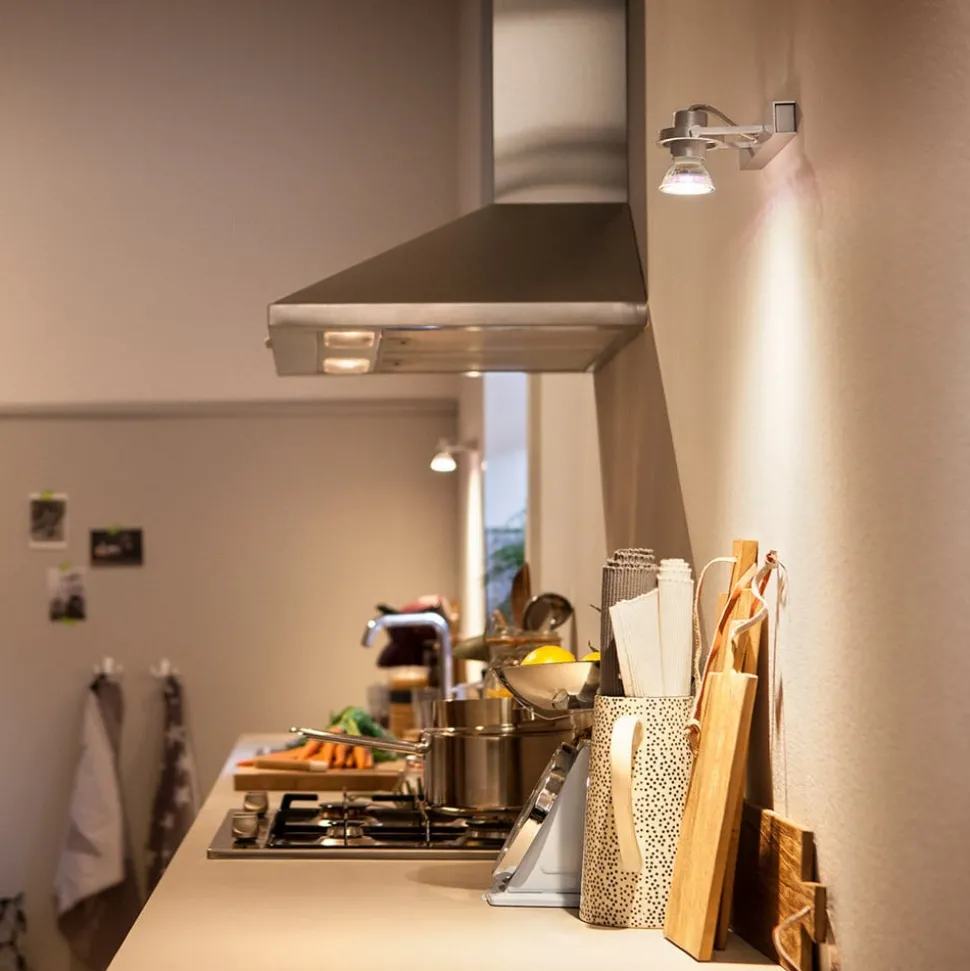 De krachtige Philips LED-reflector biedt licht dat gemakkelijk op de ogen valt, dat met de WarmGlow-functie met veel dimmers kan worden aangepast en dat steeds warmer wordt als u dimt. De lichte kleur verandert met het dimmen van warm 2.700 K naar extra warm 2.200 K.