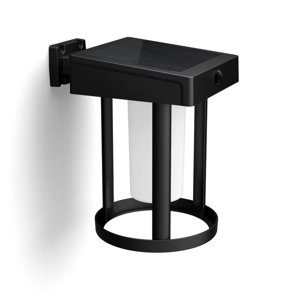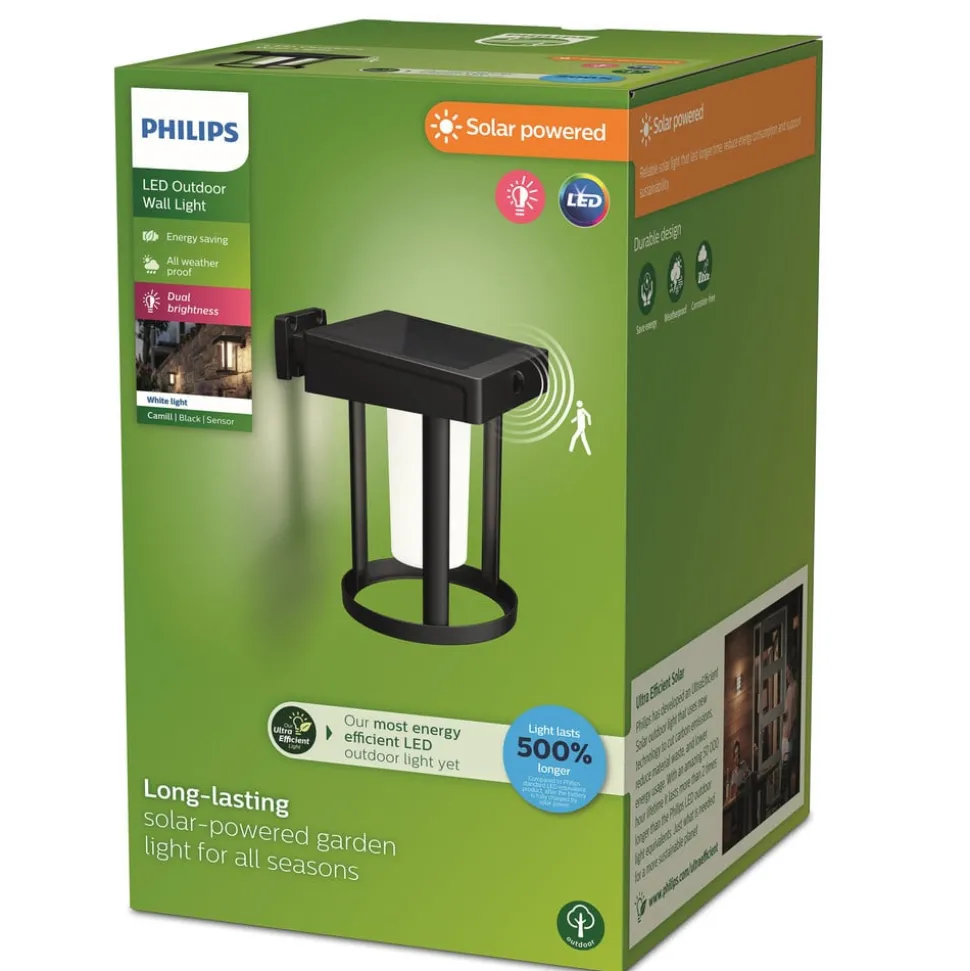 Camill wandlamp op zonne-energie met bewegings- en daglichtsensor – ronde lantaarnvorm Camill is een LED lamp op zonne-energie waarvan de batterij overdag wordt opgeladen met zonne-energie en vervolgens – wanneer deze volledig is opgeladen – gedurende ca. 35 uur sfeervol, warmwit licht uitstraalt. De lamp heeft een geïntegreerde dubbele helderheidsfunctie: Als het licht niet wordt gebruikt, wordt het gedimd; als er mensen aanwezig zijn, wordt het automatisch helderder. Uitgerust met bewegings- en daglichtsensor.