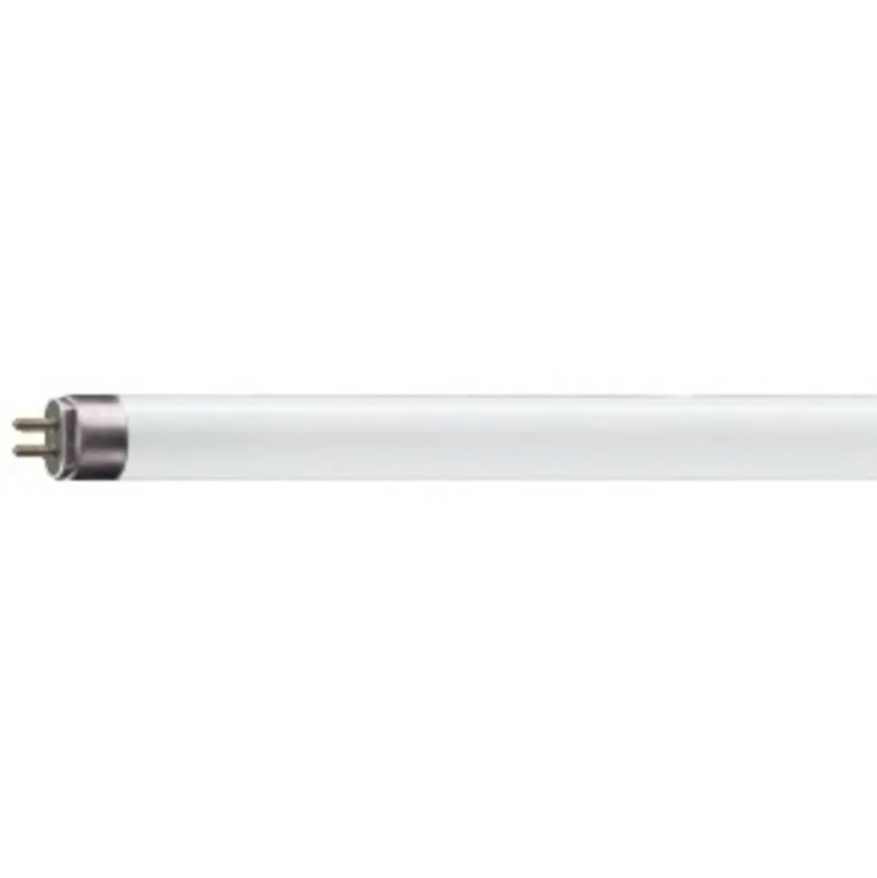 Mini standaard T5 fluorescentielamp met G5 lampvoet – Merk Philips – Standaard lichtkleur – Kleine afmetingen voor compacte toepassingen (Ø 16 mm) – Verkrijgbaar in de maten: 4W / 6W / 8W / 13W – Kan worden gebruikt met gelijkstroom op laagspanning (geschikt voor noodstroom) Toepassingen: – Voor noodroute-, oriëntatie- en reclameverlichting – Voor toepassingen waarbij kleurweergave en lichtopbrengst niet belangrijk zijn Opmerking: Mag niet met het normale huishoudelijke afval worden weggegooid.