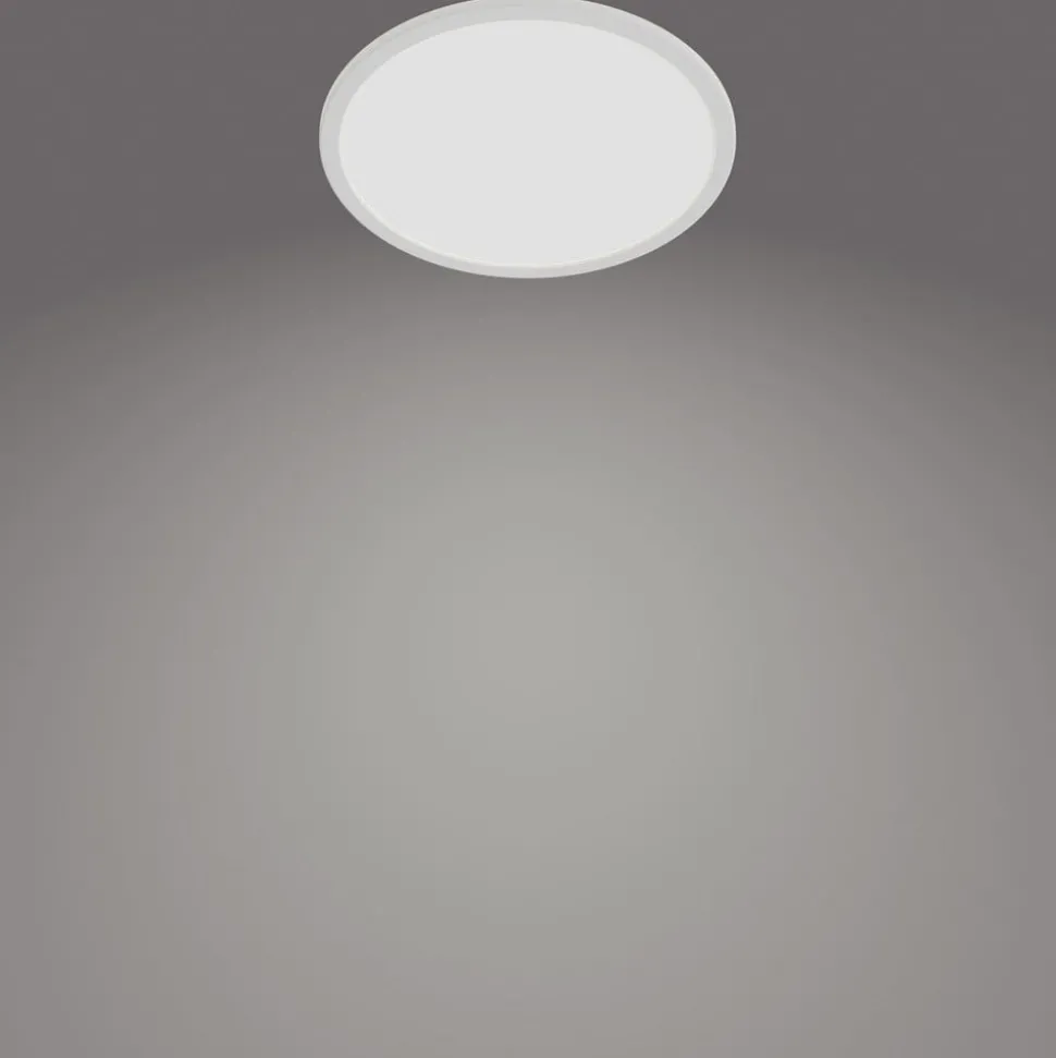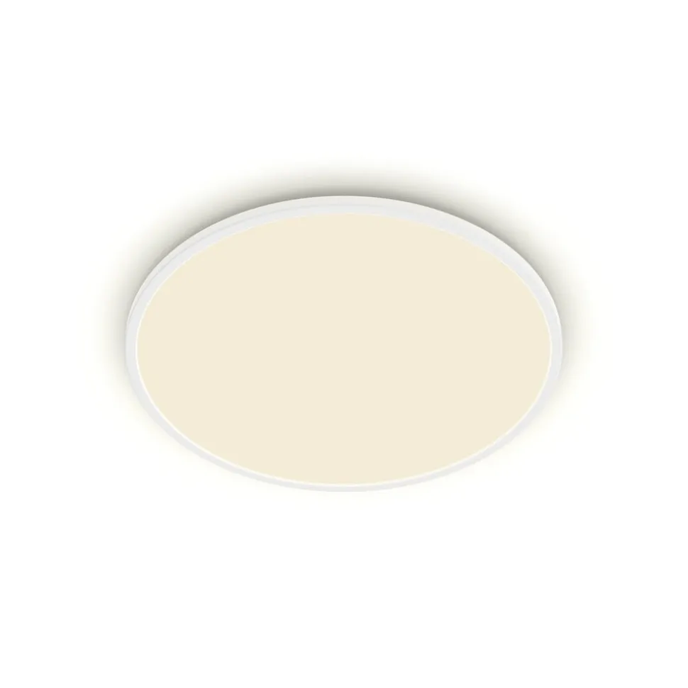 LED plafondlamp Superslim IP44 rond, dimbaar via lichtschakelaarHet universele witte licht van deze ronde LED plafondlamp kan via de lichtschakelaar in drie helderheidsniveaus (100%, 50% of 10%) worden geschakeld.Het armatuur voldoet aan de door Philips ontwikkelde EyeComfort-criteria. Het biedt een aangenaam licht dat gemakkelijk is voor de ogen. Dankzij beschermingsklasse IP44 is het perfect geschikt voor badkamers en andere vochtige ruimtes.- met geheugenfunctie- ook geschikt voor wandmontage