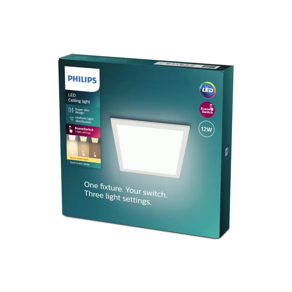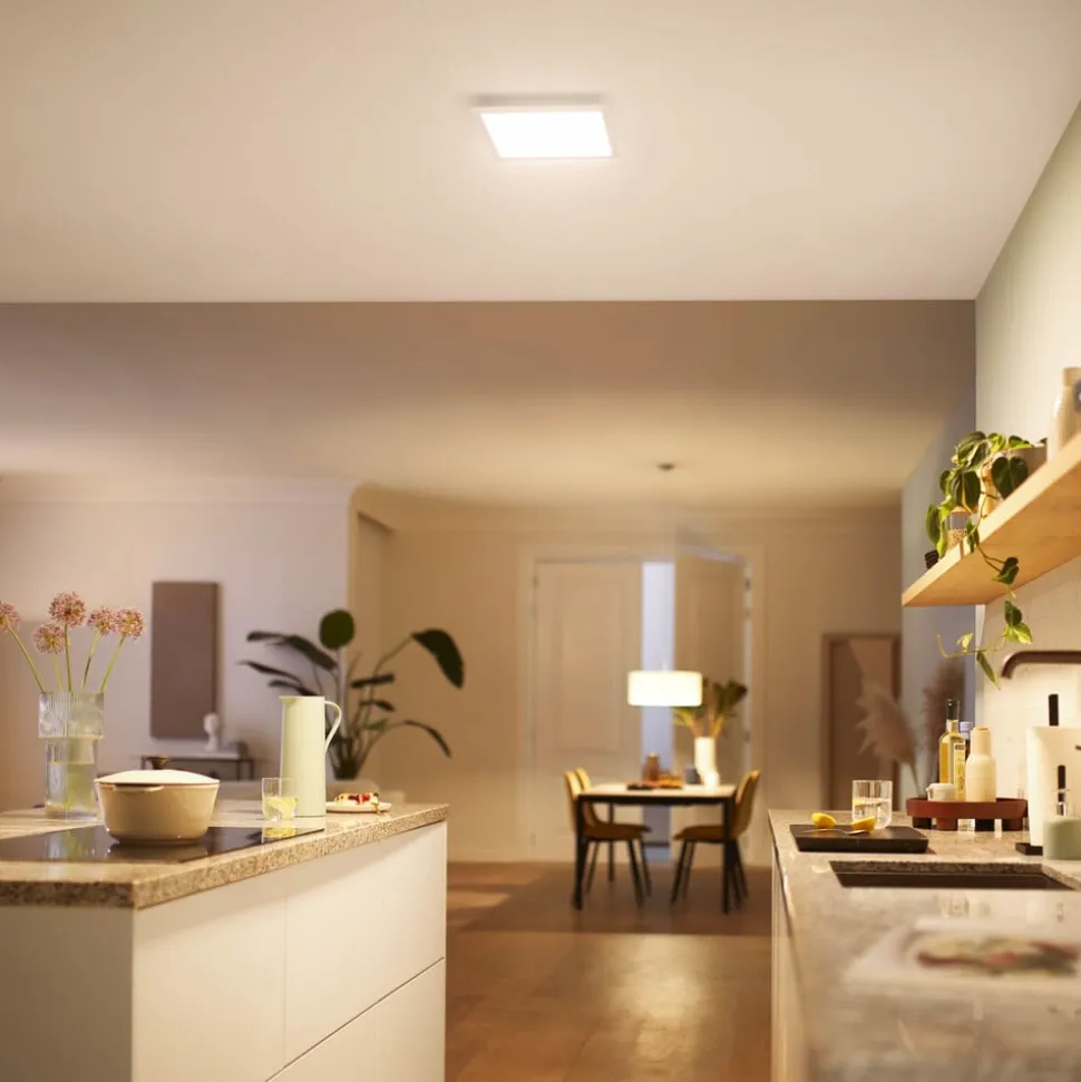 LED paneel Touch in vierkante vorm met Scene-Switch functieHet vierkante LED paneel Touch van Philips zorgt voor een gelijkmatige verlichting van een ruimte en kan via de lichtschakelaar met de Scene-Switch functie in verschillende helderheidsniveaus worden geschakeld. Door meerdere keren op de lichtschakelaar te drukken, kan de helderheid in drie niveaus (100%, 50% of 10%) worden geschakeld en zijn er geen andere accessoires nodig.- met geheugenfunctie