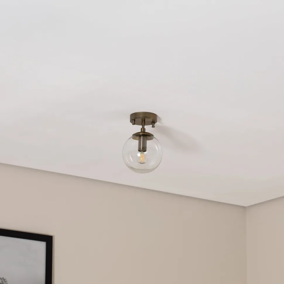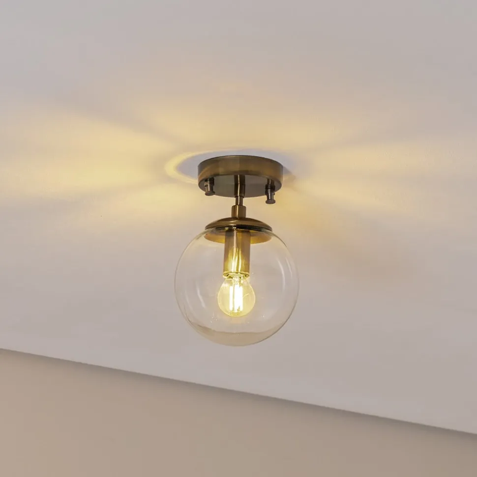 De plafondlamp Atmaca 10215 combineert een klassiek design met moderne functionaliteit. Hij is gemaakt van hoogwaardig glas en metaal en straalt in een elegante goudkleurige antieke afwerking. Deze lamp is niet alleen een blikvanger, maar ook veelzijdig inzetbaar in de woonkamer, eetkamer, hal of keuken. De heldere glasoptiek zorgt voor een gelijkmatige lichtverdeling en creëert een aangename sfeer.