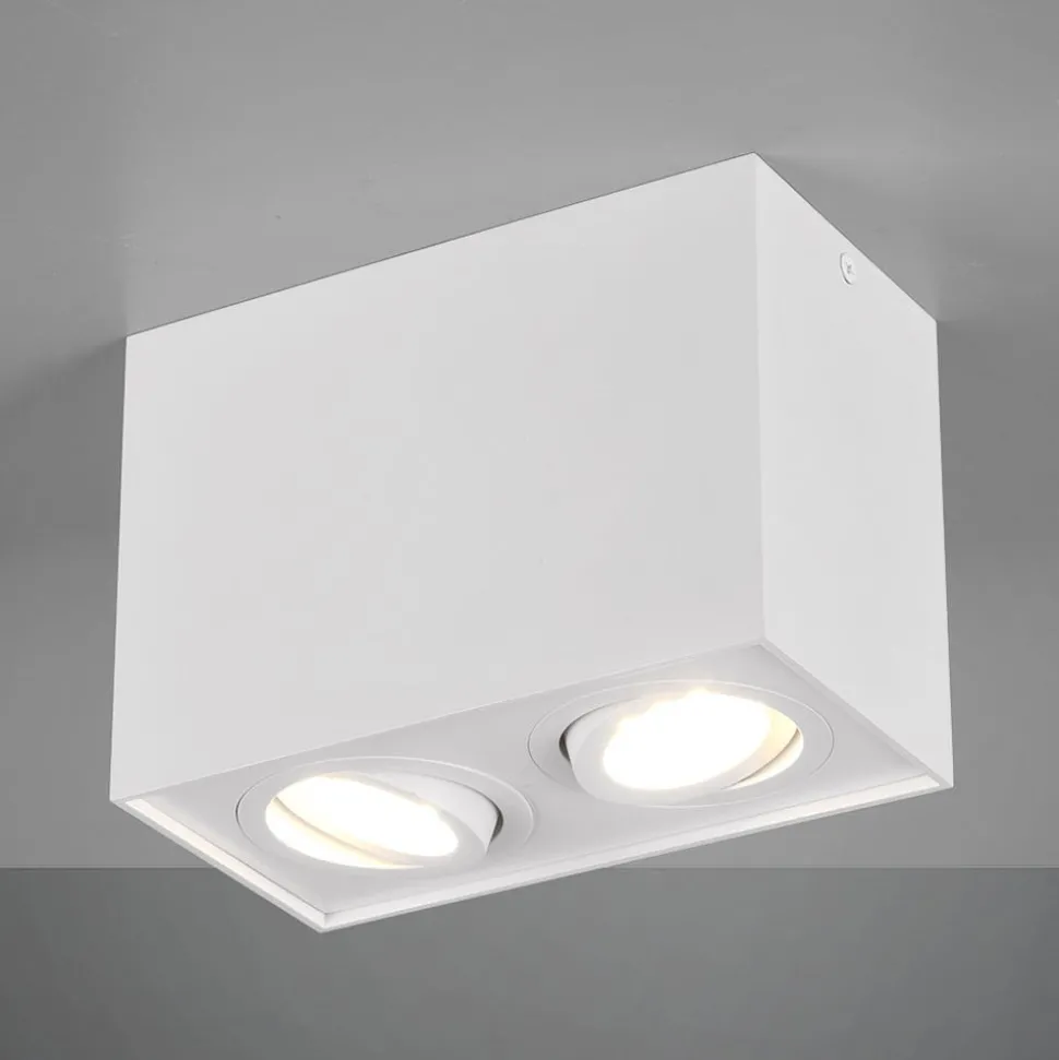 De Biscuit plafondlamp is vierkant van vorm en daardoor eenvoudig. De witte kleurtint camoufleert zich prachtig tegen het witte plafond, zodat de tweevlamige schijnwerper pas op het tweede gezicht opvalt.