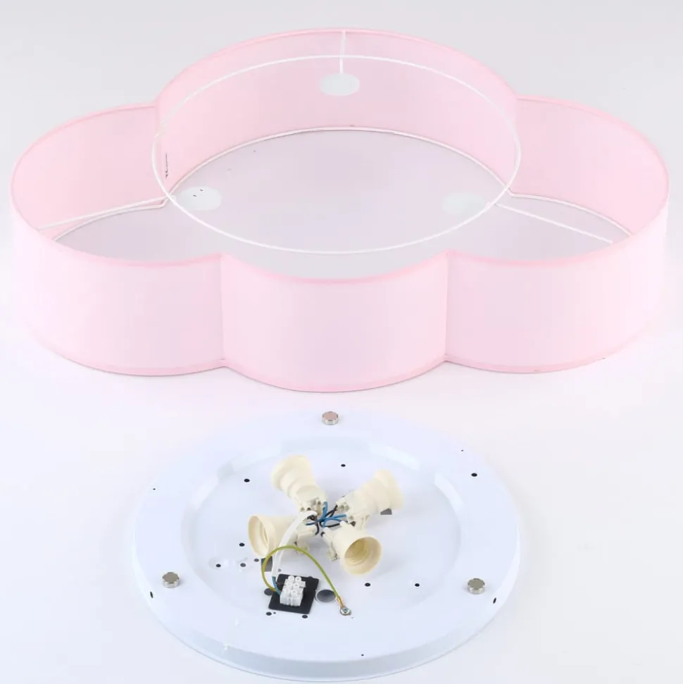 De plafondlamp Cloud combineert een speels wolkendesign met de hoogwaardige afwerking van textiel en staal. Deze lamp is speciaal ontworpen voor de kinderkamer en past naadloos in de stijl van een jonge woonkamer. De zachte kleuren roze en wit creëren een rustgevende sfeer die zowel uitnodigt tot spelen als tot ontspannen.