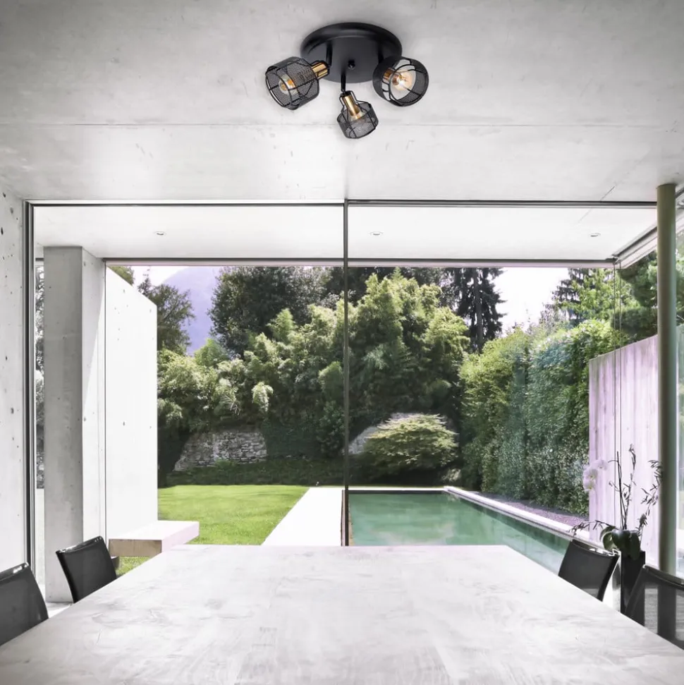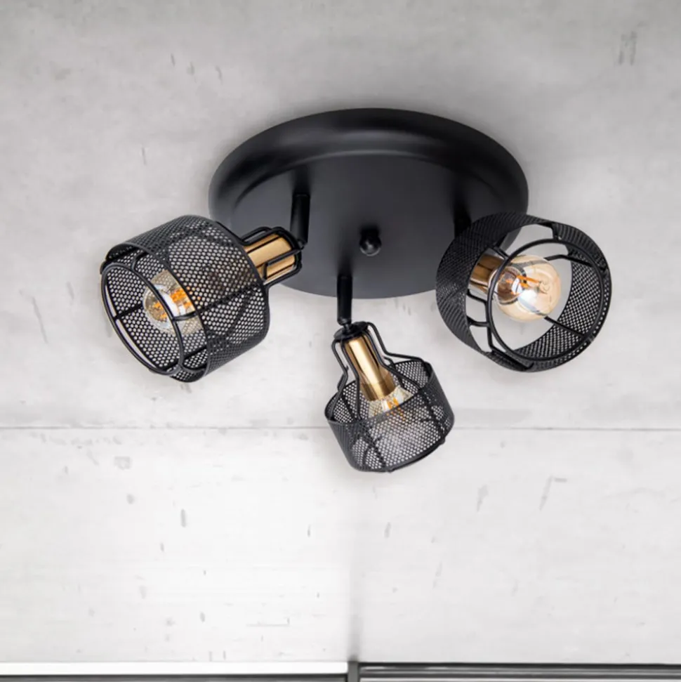 Plafondlamp Foro, 3-lamps, zwart/goud