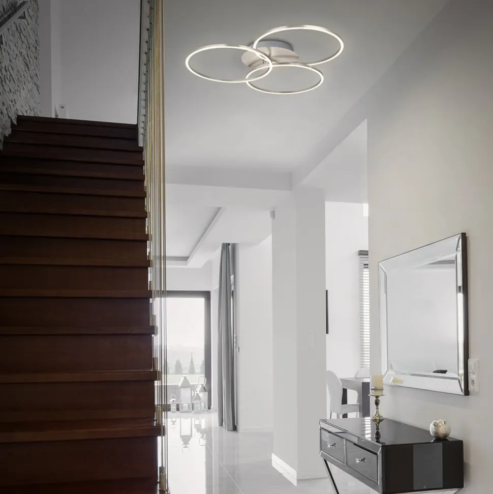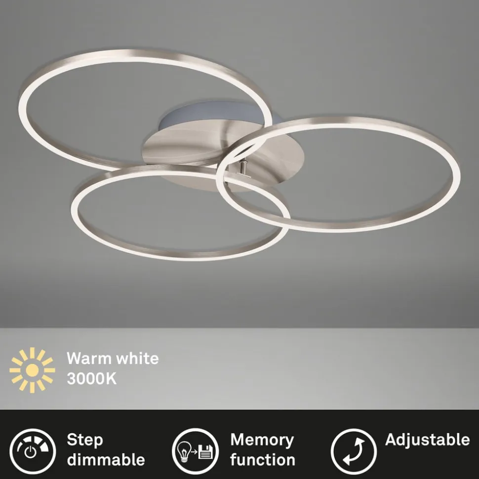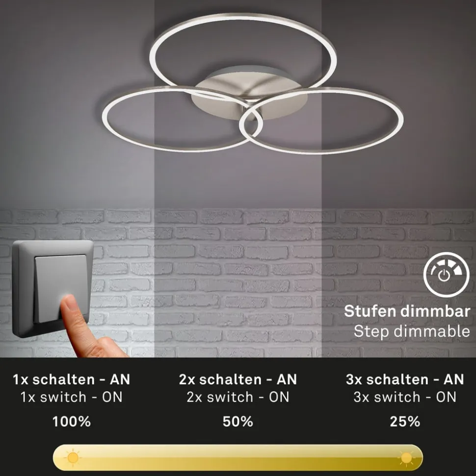 Plafondlamp Frame ring Switch Dim nikkel 3-lamps