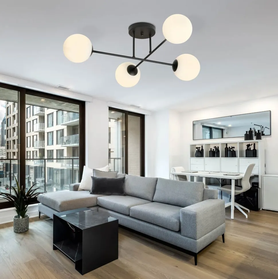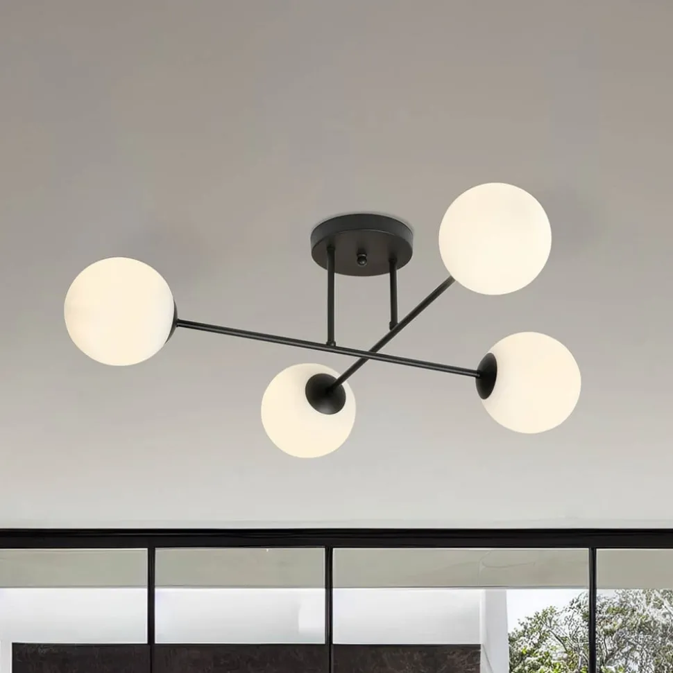 De plafondlamp Glassy, 4-lamps en gekruist, combineert een modern design met hoogwaardige materialen. De lamp is gemaakt van robuust staal en edel glas en heeft een stijlvolle zwarte en opaalwitte afwerking. Deze combinatie zorgt voor een harmonieuze lichtverdeling en geeft elke ruimte, of het nu de woonkamer, keuken, eetkamer of hal is, een elegante uitstraling. De in Europa vervaardigde lamp staat voor kwaliteit en tijdloze esthetiek.