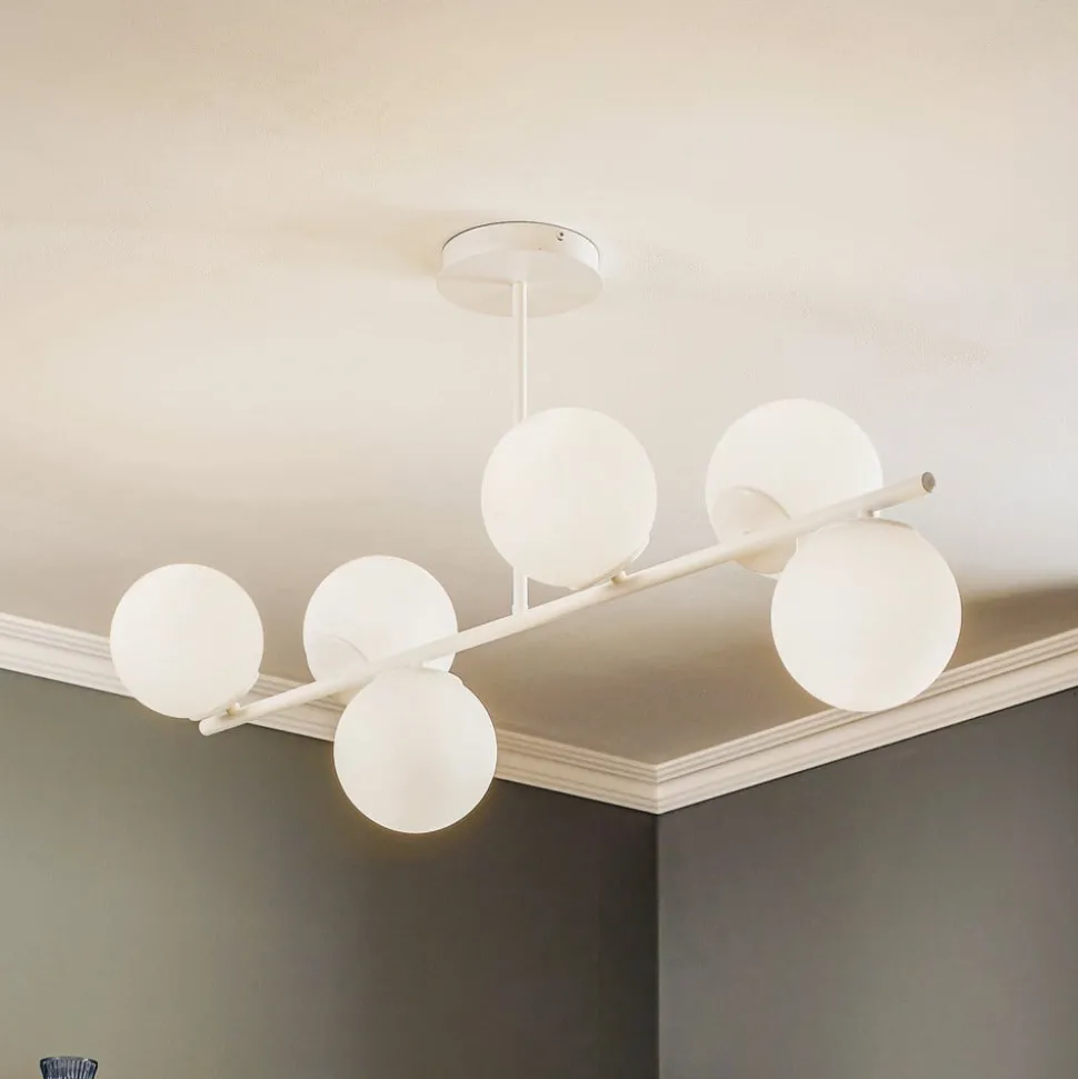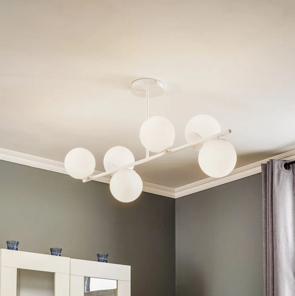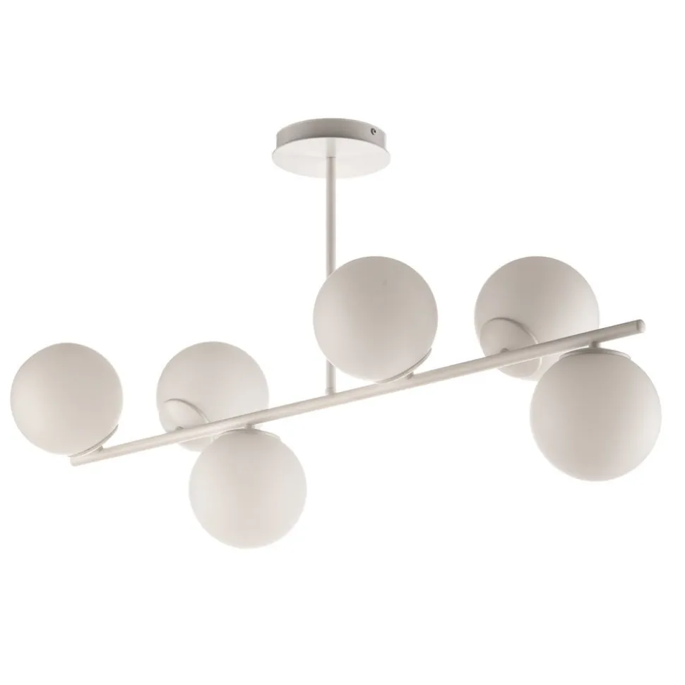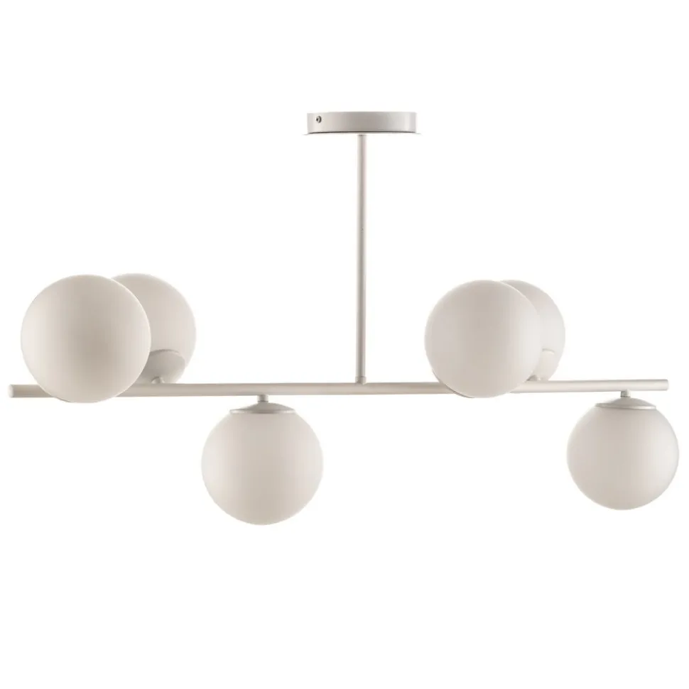 De plafondlamp Kabo, met zijn moderne design en 6-lamps opstelling, zet stijlvolle accenten in elke ruimte. Gemaakt van gepoedercoat staal en glas, combineert hij duurzaamheid met een aantrekkelijke esthetiek. De witte kleur zorgt voor een tijdloze elegantie die naadloos past in de woonkamer, hal of eetkamer. Een bijzonder kenmerk van deze lamp is de Europese productie, die staat voor kwaliteit en designbewustzijn.