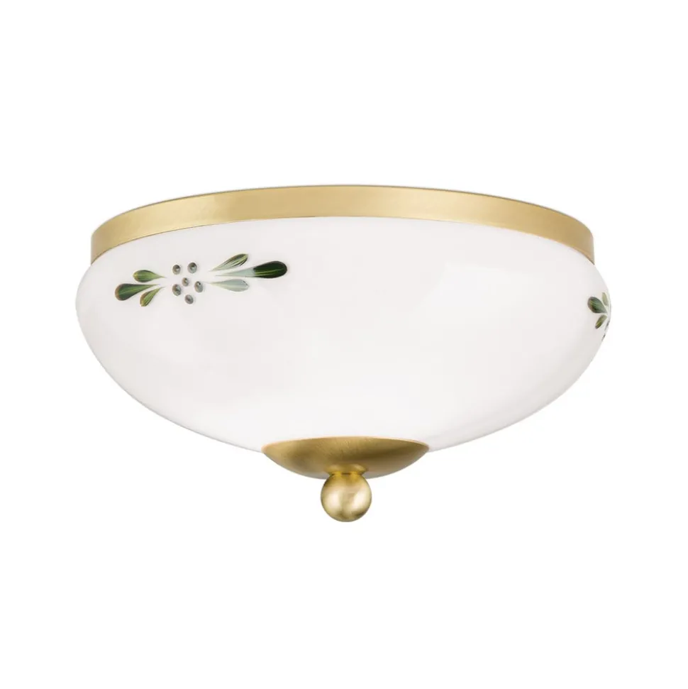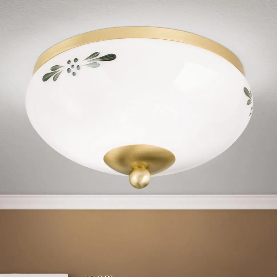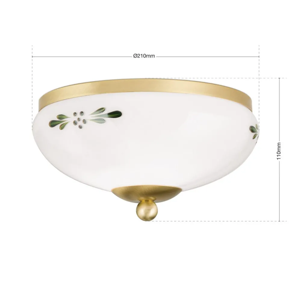 Plafondlamp Landhaus messing opaal groen Ø 21 cm