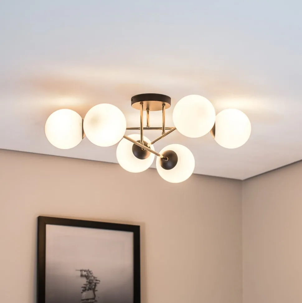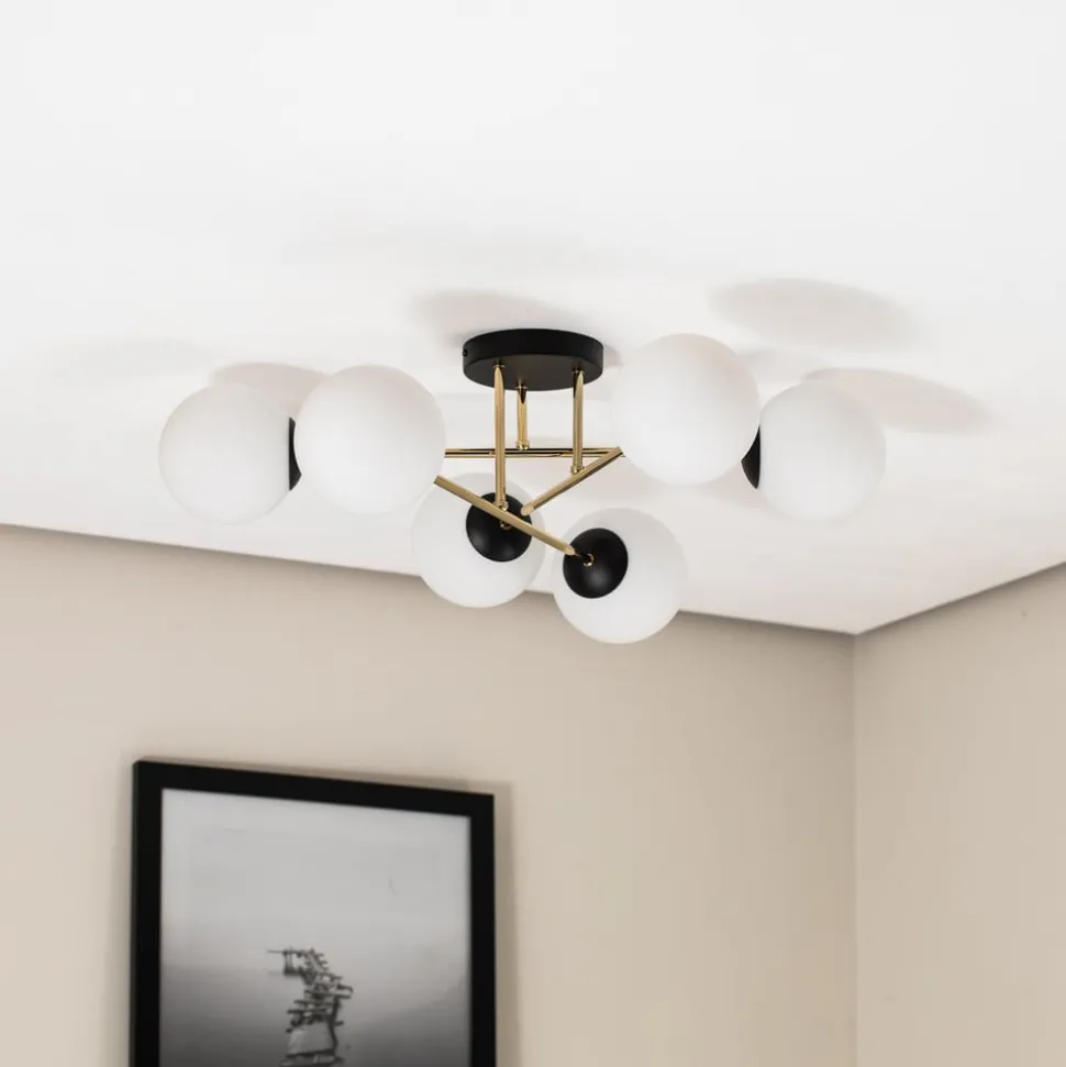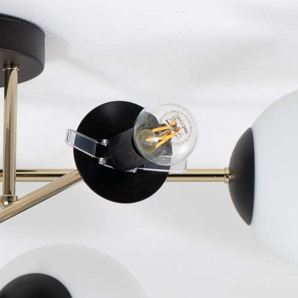 De plafondlamp Magnum combineert een modern design met hoogwaardige materialen zoals glas en staal om elke ruimte een bijzondere uitstraling te geven. Met zijn opaalwitte, gouden en zwarte kleurstelling zet hij stijlvolle accenten en past hij harmonieus in verschillende woonruimtes zoals de woonkamer, eetkamer, hal en keuken. De mogelijkheid om de lamp via een externe dimmer te bedienen, biedt extra flexibiliteit bij de lichtinrichting, zodat moeiteloos aan verschillende sferen en eisen kan worden voldaan.