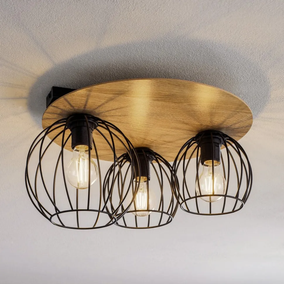 Plafondlamp Malin: 3-lamps elegantie met natuurlijke houten kap